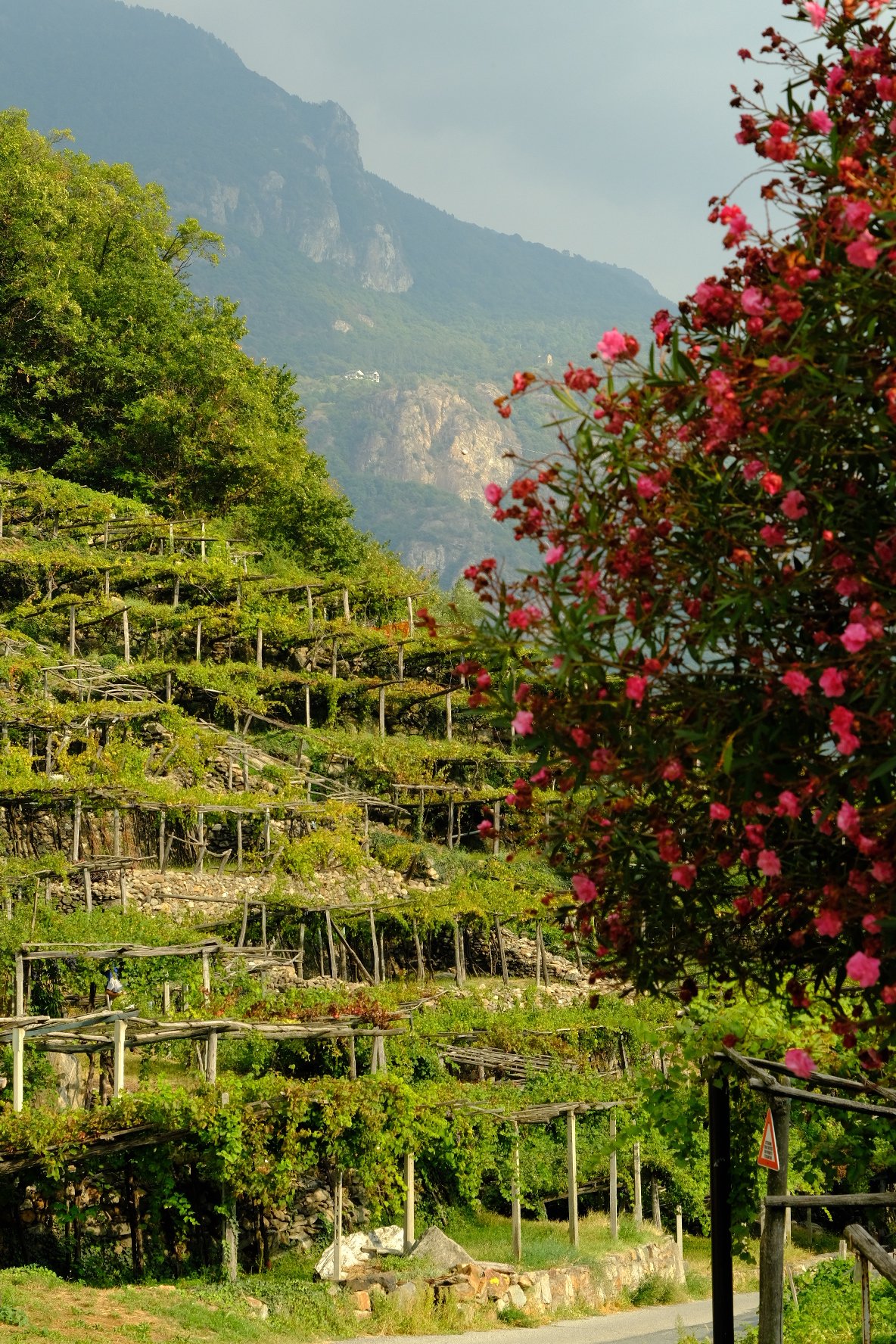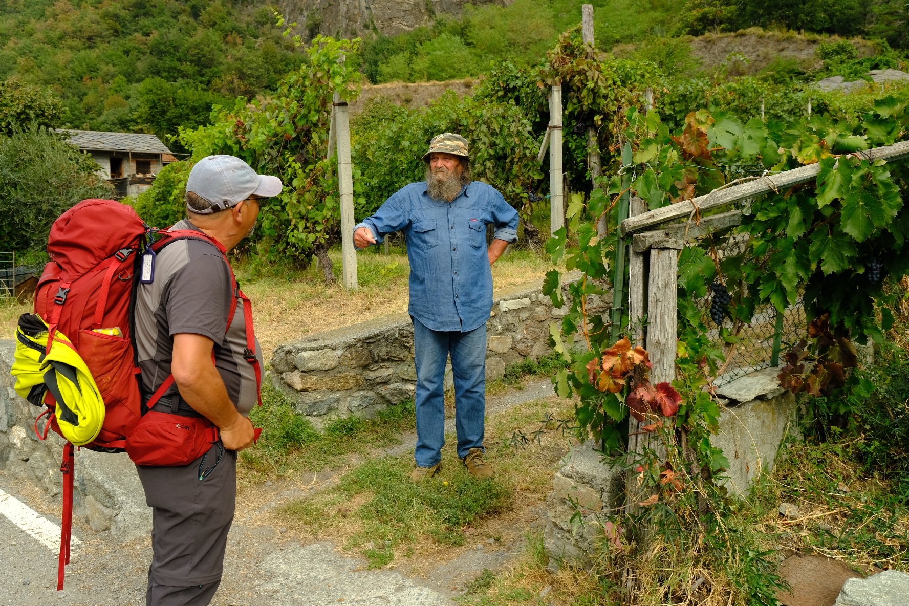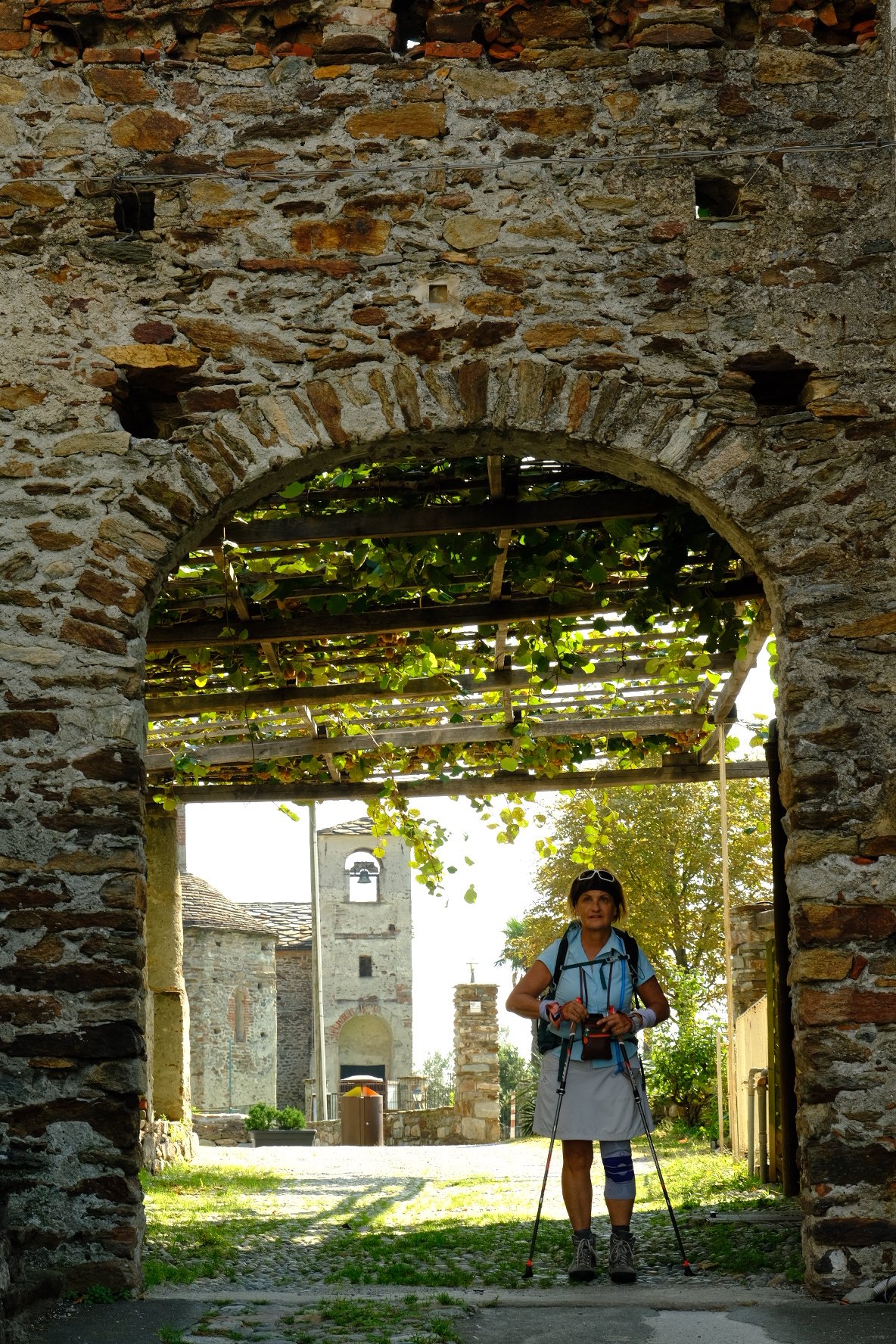 Ce jeudi, nous sommes partis de Verrès vers Pont-saint-martin après une nuit chez les Frères dans les locaux des amis de la Francigena. Spartiate mais good-enough. Nous avons traversé la région des vignes, des ponts romains et l’impressionnant château de Bard ( différents ascenseurs pour y accéder et belle expo photo!). Pont-saint-martin est particulièrement peu animé. Notre choix de resto s’est réduit à une pizza : promis on se rattrapera ! (merci à Mauro qui m’avait bien prévenu).  Le trajet nous amène ensuite dans une autre région du vin où les vignes s’étendent sur des supports en bois et des piliers en pierre. Nous avons quitté le Val d’Aoste et sommes maintenant dans le Piémont. Nous arrivons dans la plaine avec des dénivelés beaucoup plus faibles.