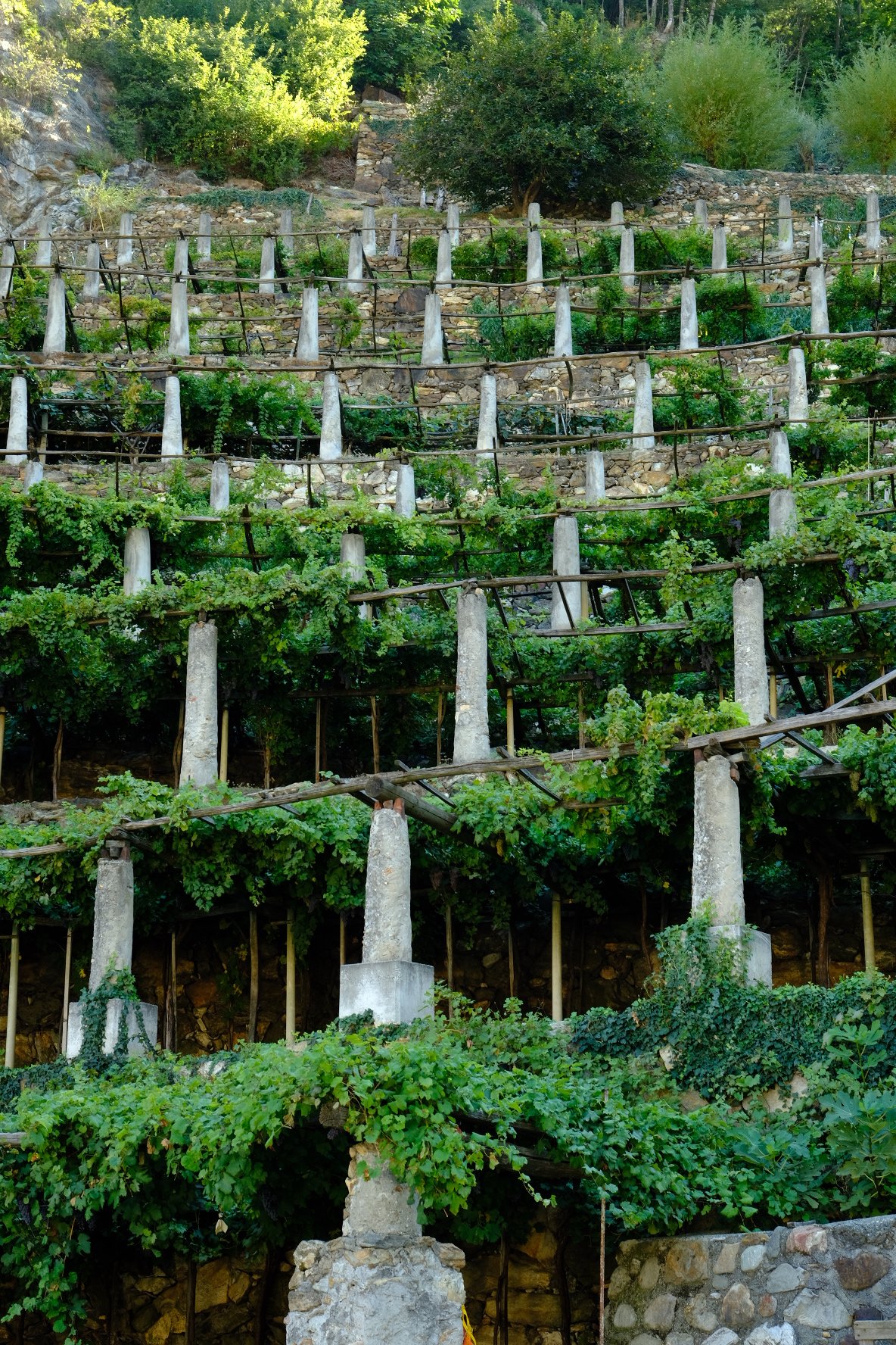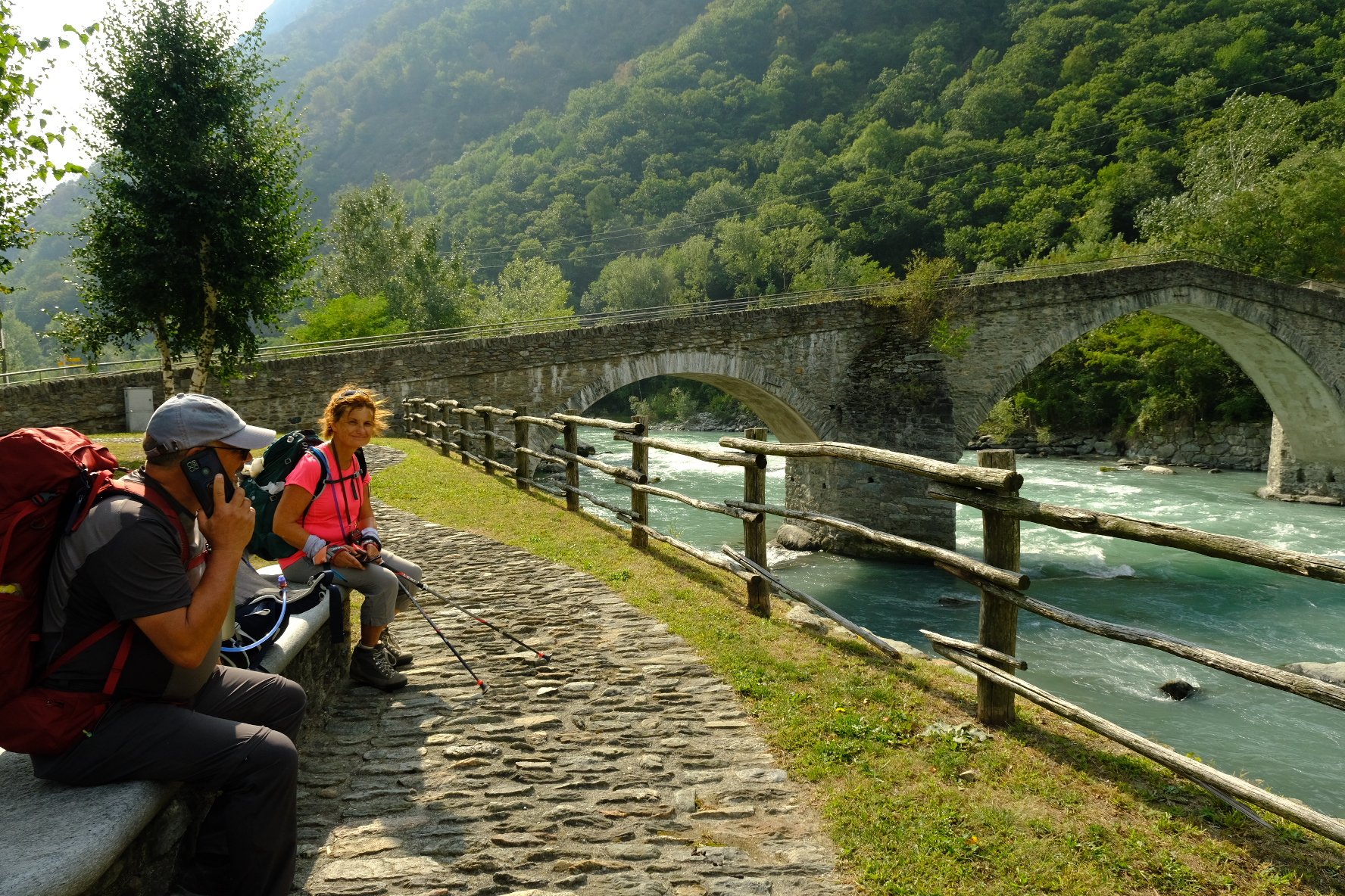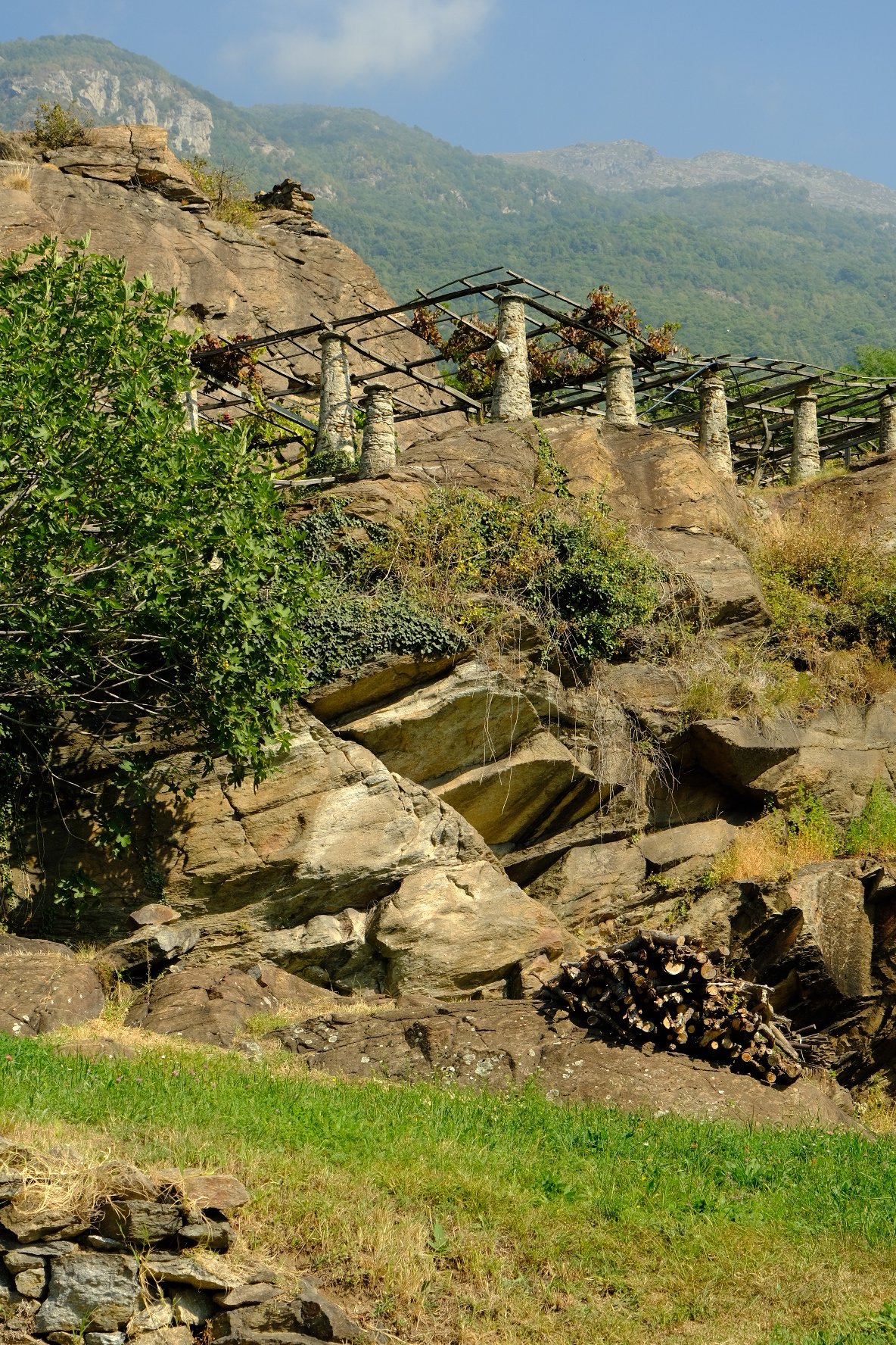 Ce jeudi, nous sommes partis de Verrès vers Pont-saint-martin après une nuit chez les Frères dans les locaux des amis de la Francigena. Spartiate mais good-enough. Nous avons traversé la région des vignes, des ponts romains et l’impressionnant château de Bard ( différents ascenseurs pour y accéder et belle expo photo!). Pont-saint-martin est particulièrement peu animé. Notre choix de resto s’est réduit à une pizza : promis on se rattrapera ! (merci à Mauro qui m’avait bien prévenu).  Le trajet nous amène ensuite dans une autre région du vin où les vignes s’étendent sur des supports en bois et des piliers en pierre. Nous avons quitté le Val d’Aoste et sommes maintenant dans le Piémont. Nous arrivons dans la plaine avec des dénivelés beaucoup plus faibles.