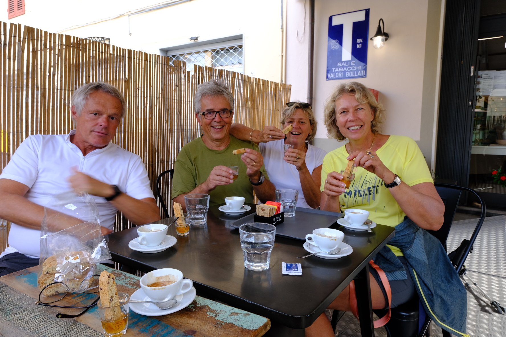 Le trajet du jour nous fait passer par Fucecchio où il existe un bar pour le moins sympa avec les pélerins. Nous nous y arrêtons pour un café et ca se termine par une bonne petite liqueur italienne offerte par le patron. Ça se consomme en trempant un biscuit sec dans le verre de liqueur.