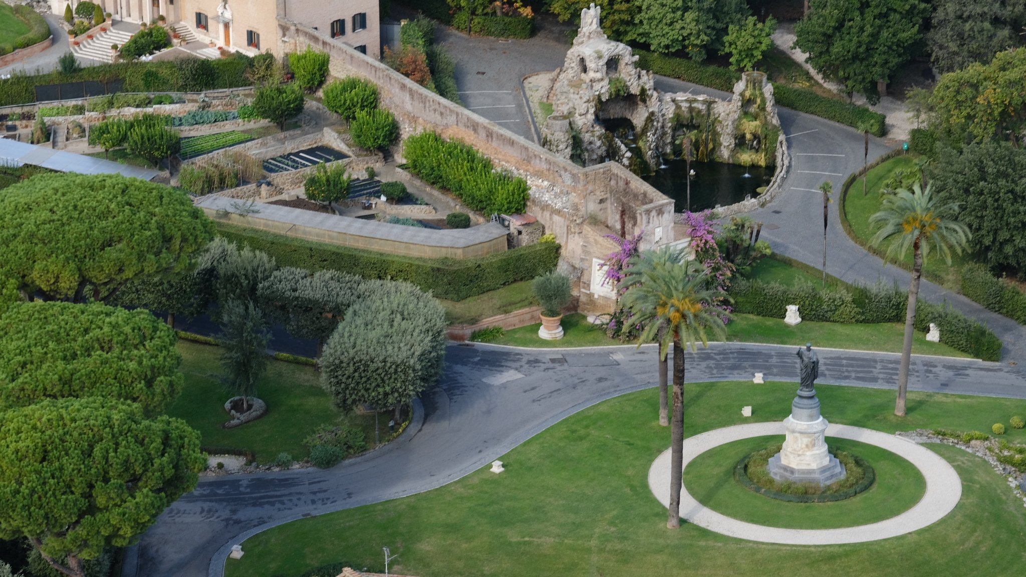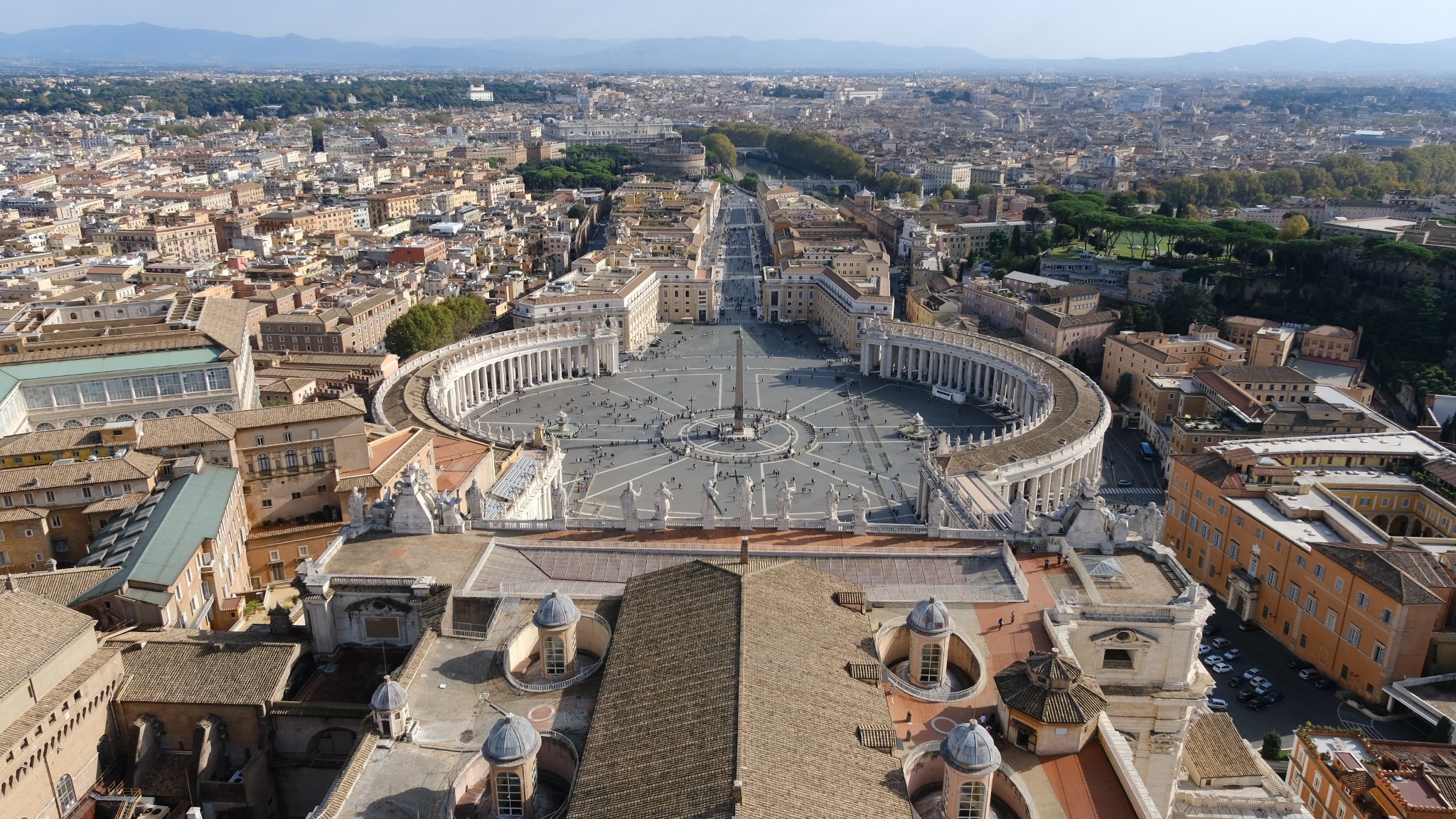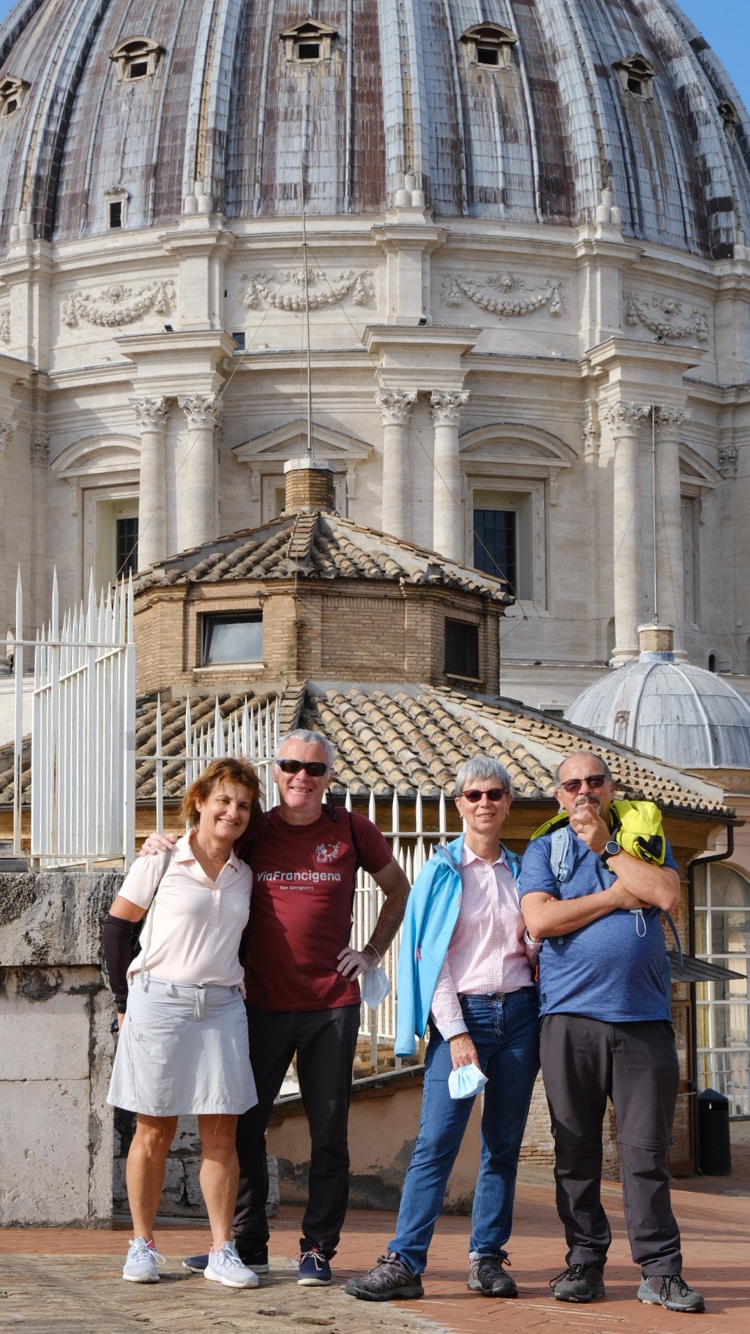 Avant la bénédiction, nous sommes allés visiter la basilique, en commençant par le sommet de la coupole. La vue est splendide sur la place Saint-Pierre et les jardins du Vatican.