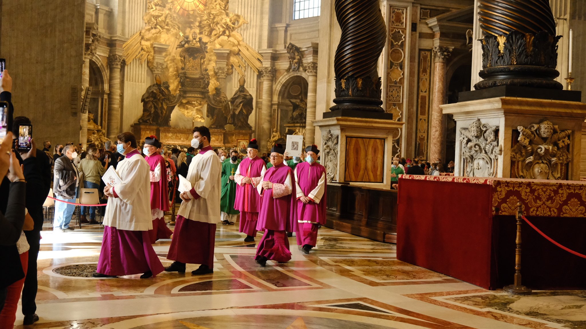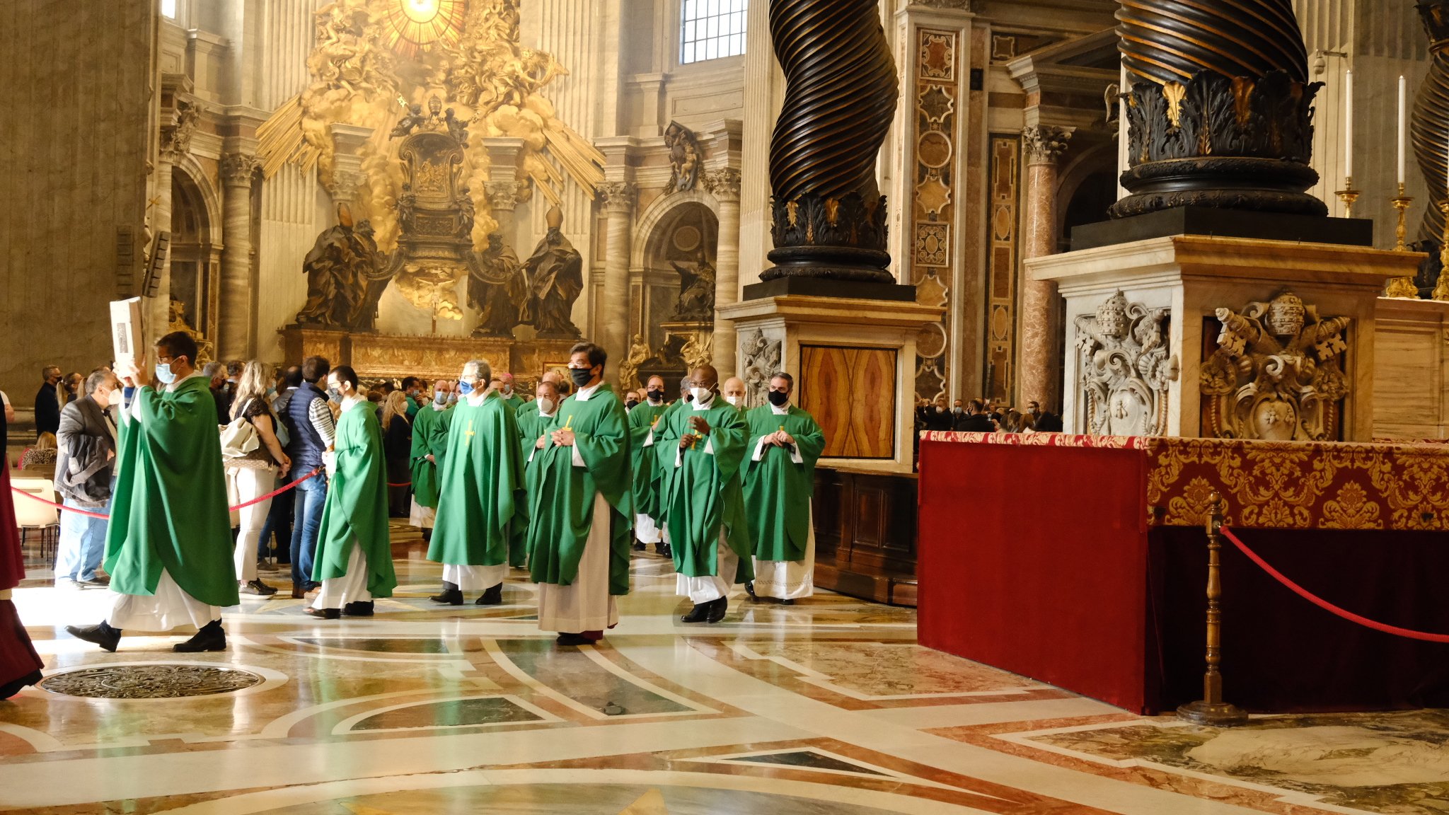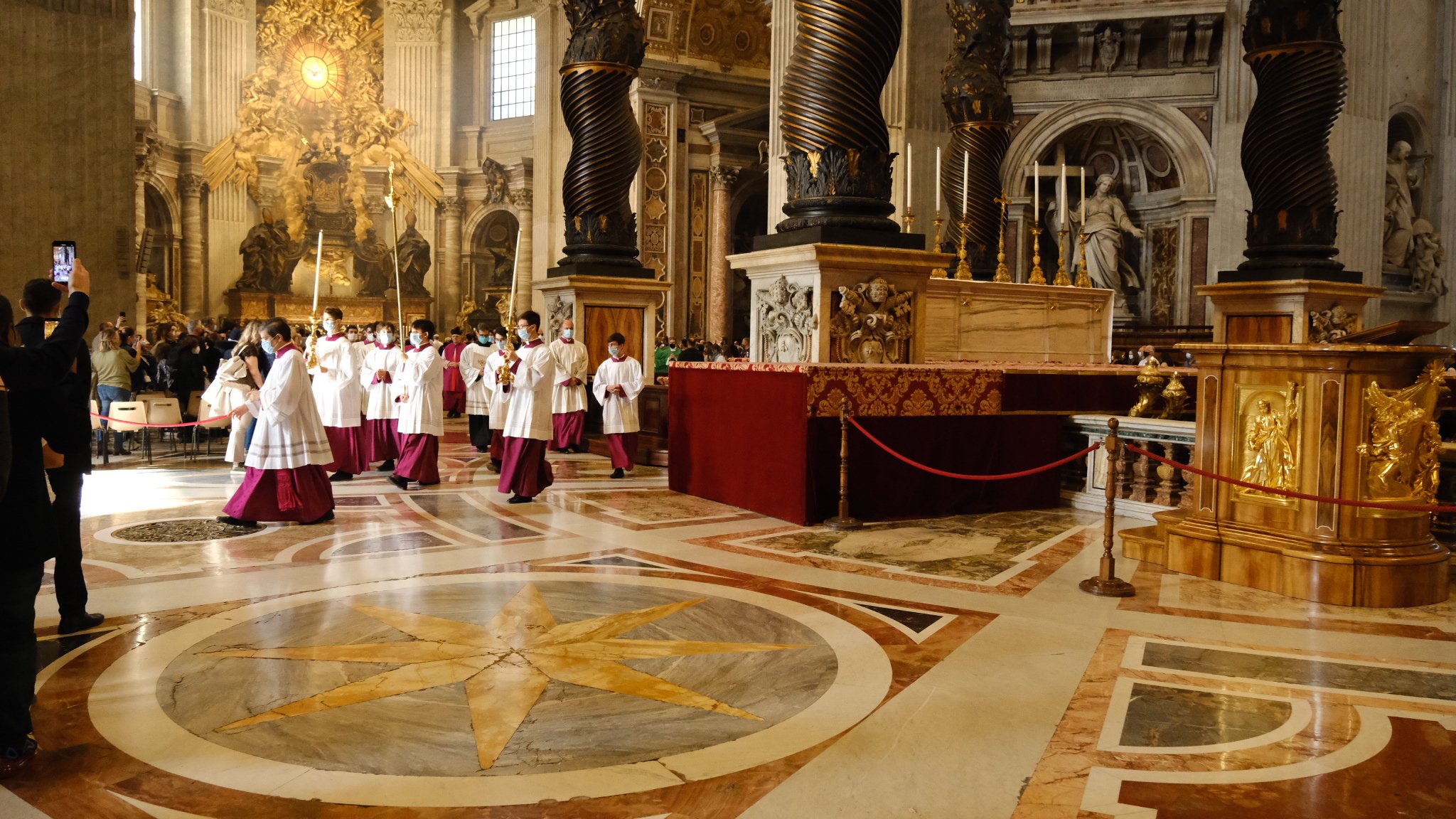 Dans la basilique se déroule la Grande messe du dimanche. Le lieu est exceptionnel et les chants grégoriens s’y expriment complètement.