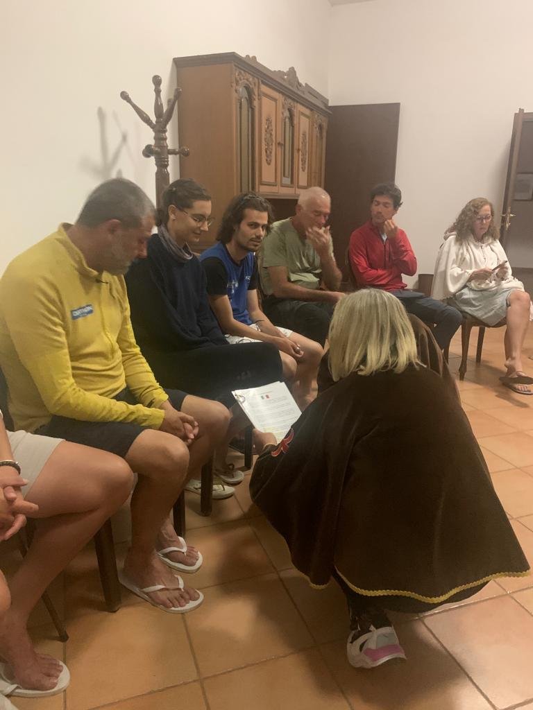 Hier soir nous avons logé dans un ancien couvent, récemment abandonné par ses religieuses. Incroyable, nous étions 18 pèlerins. La plupart arrivaient a Rome. Nous étions seulement 5 à partir de Rome, une dame vers Assise et nous 4 vers le Sud. Nous avons eu droit à un lavage de pieds et à un baiser sur le pied (tradition de pèlerins).