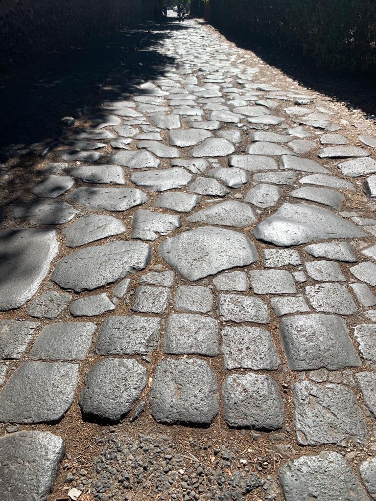 Ensuite pendant une quinzaine de kilomètres, nous avons marché sur l’ancienne via Appia (2.000 ans sous nos pieds)