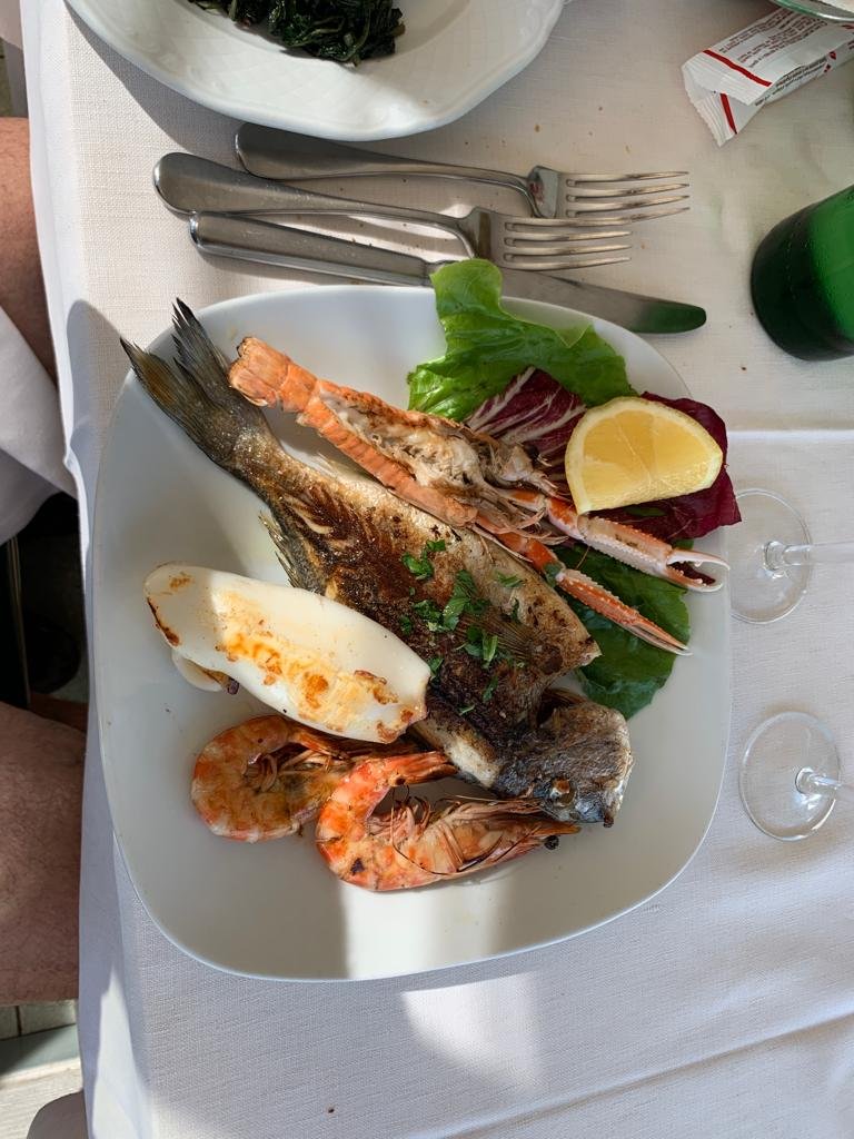 Après un relief en dents de scie, nous fonçons sur Gaeta, station balnéaire fort prisée en haute saison. Par chance, elle se donne à nous sous son plus beau visage. On se croirait un peu à Cannes: bateaux de plaisance, palmiers, promenade le long de la mer. Petit café pour se reposer.