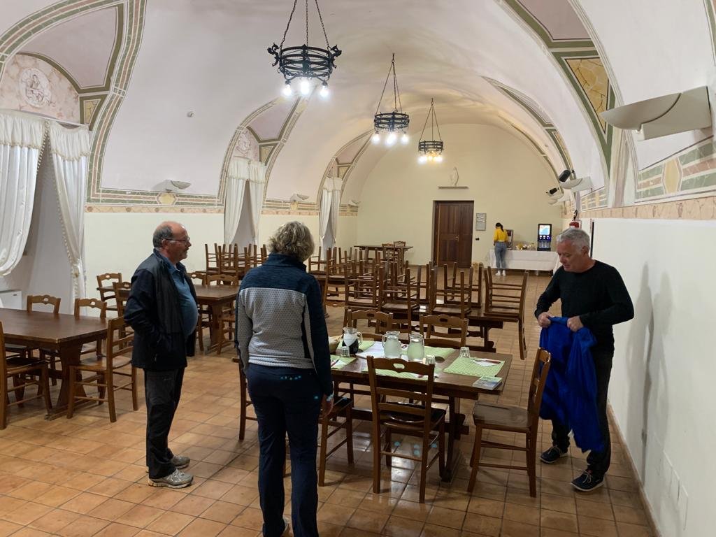 Bernard mais également Massimo ont amadoué notre hôtesse Rosa, revéche au premier abord, mais ensuite charmante. Non seulement, elle nous prépare un repas que nous mangeons tous seuls dans un grand réfectoire, mais elle nous réserve notre hôtel et restaurant pour demain. Elle nous envoie au lit à 20h tous seuls sans personne dans ce grand couvent, sans jeu de carte, ni baby-foot, ni connection internet , juste une reflexo pour Bernard…… On verra bien quand ce post parviendra à sortir de cet endroit perdu. ….