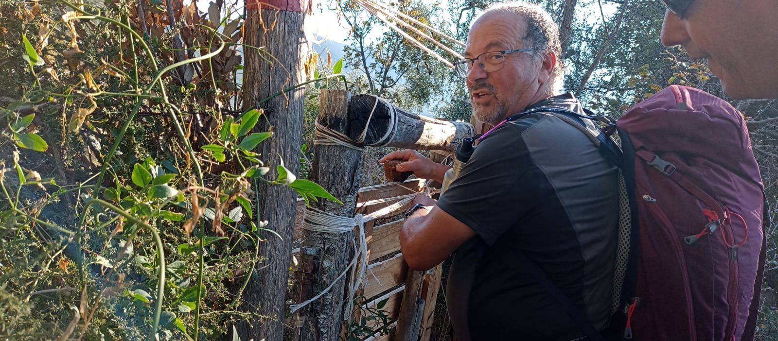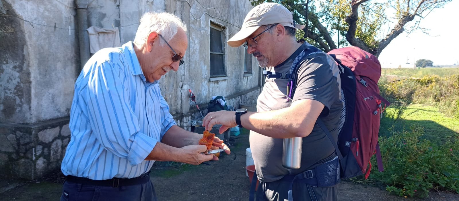 En passant devant une ferme, Angelo et ses copains nous proposent de l’eau fraîche, puis de bonnes grosses figues éclatées (Gene a dû jeter ses petites) et enfin des figues de barbarie . Il nous montre la technique pour les peler: couper les extrémités, puis fendre le centre, et enfin retirer les épines des doigts en les grattant au canif.