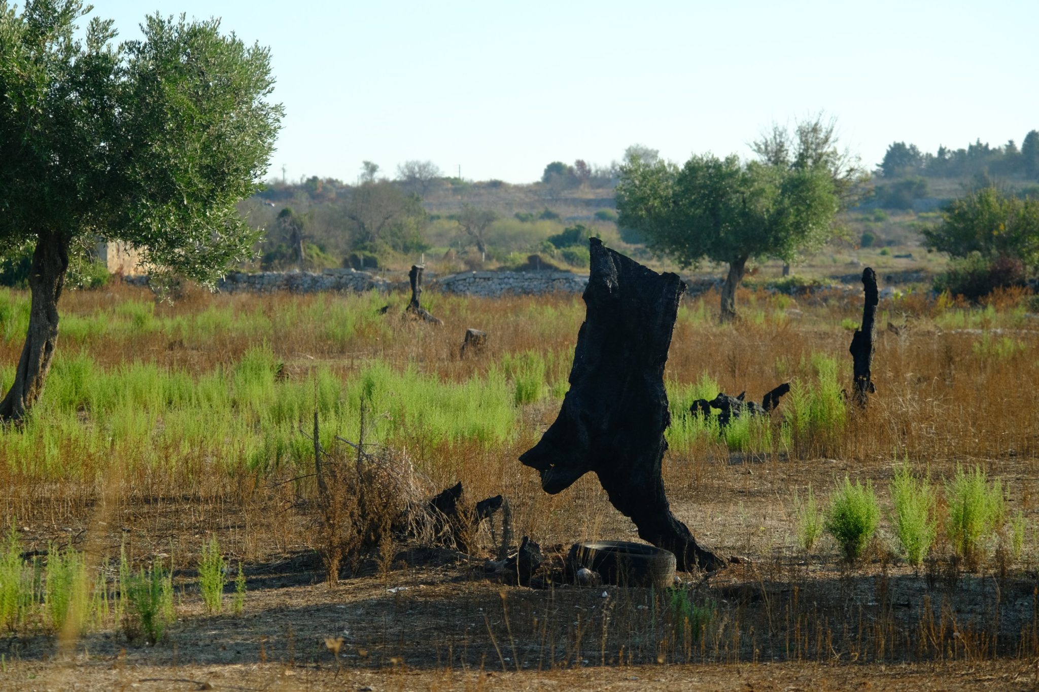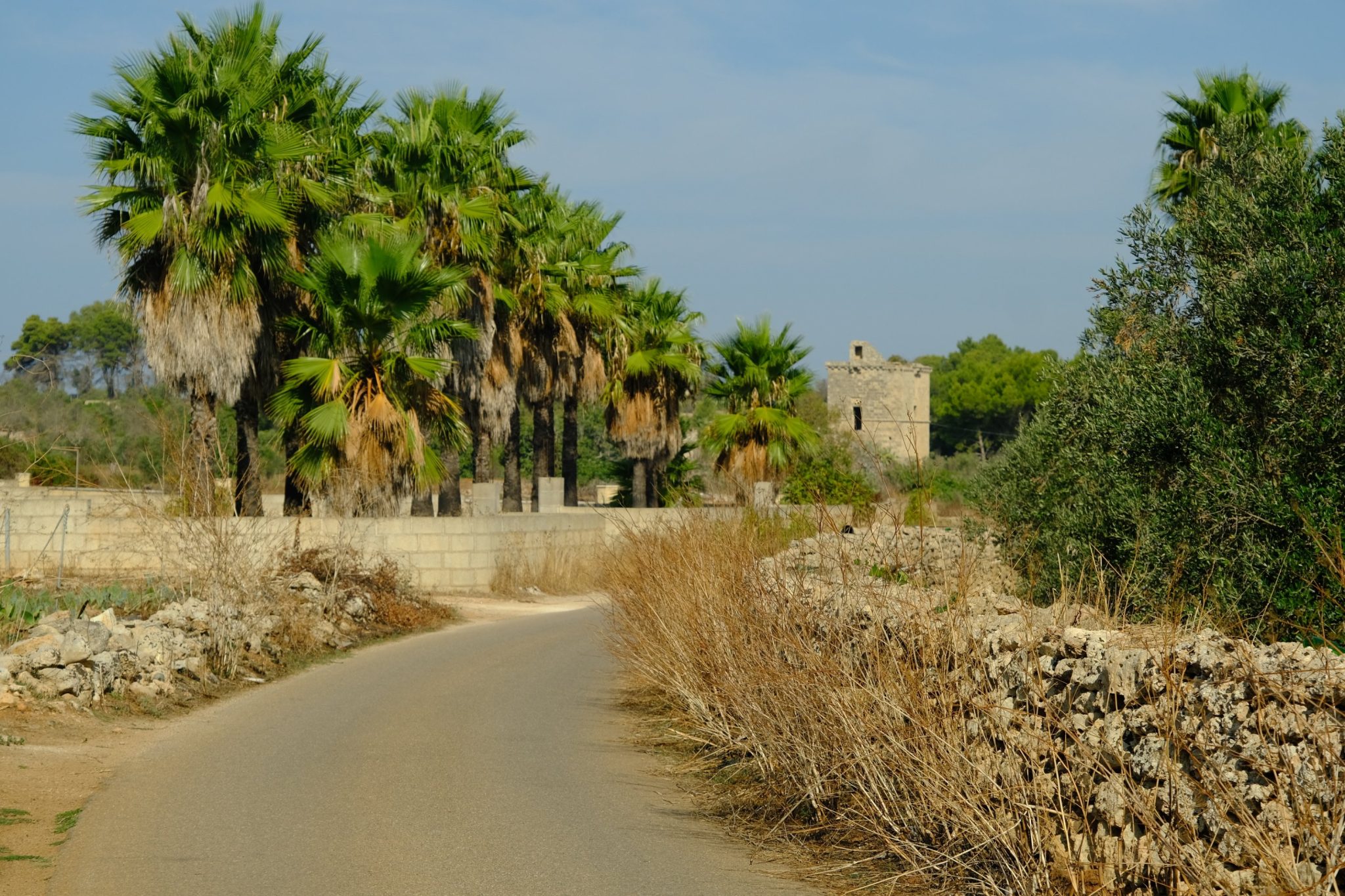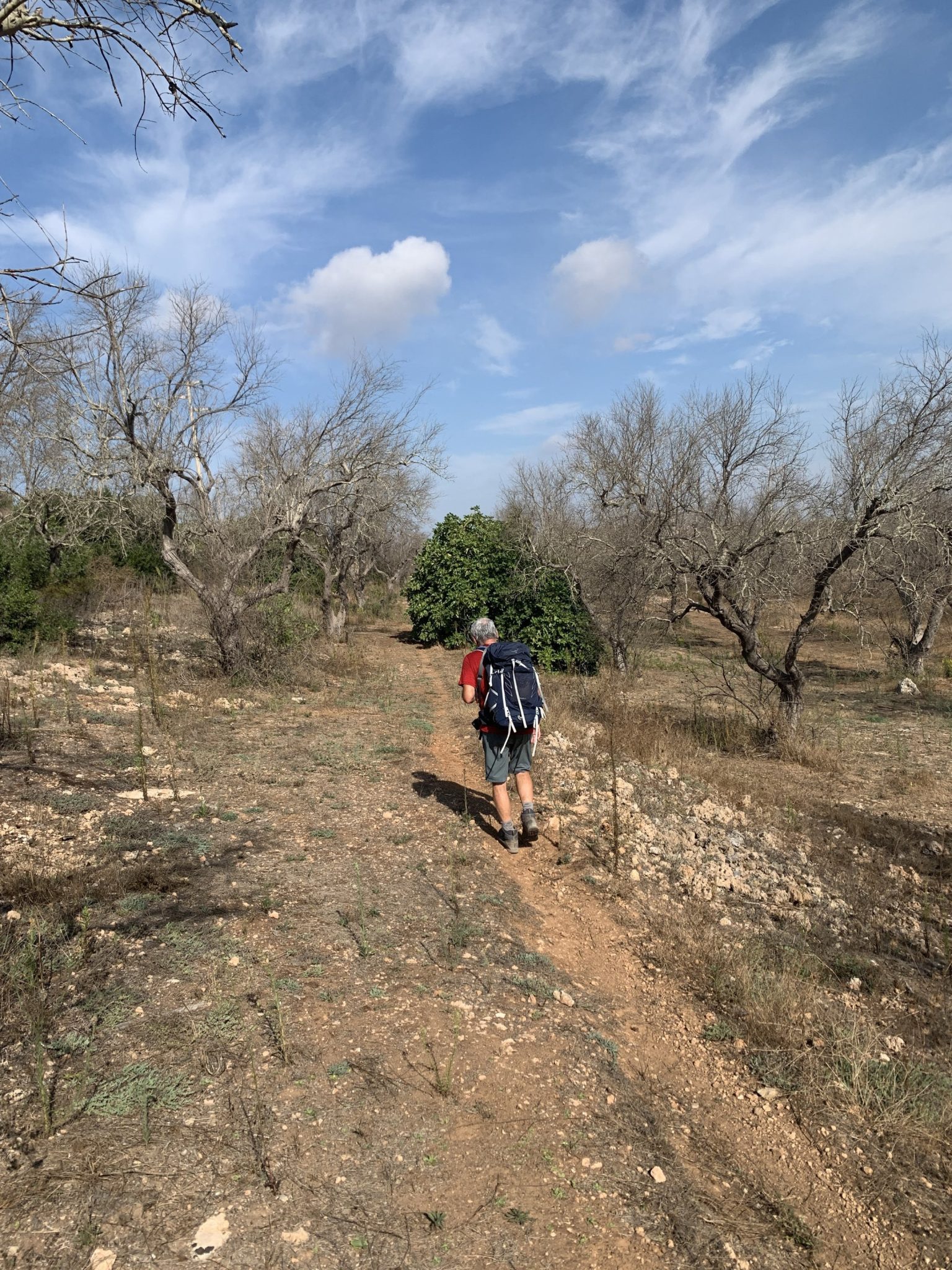 Nous avons une vingtaine de kilomètres à parcourir pour rejoindre le bord de mer. Nous nous trouvons un parcours à travers de petits chemins pratiquement sans la moindre voiture ni sans la moindre rencontre. Le spectacle reste dans l’alternance entre les tristes champs d’oliviers laissés en jachère et les beaux chemins se faufilant entre les murets de pierres.