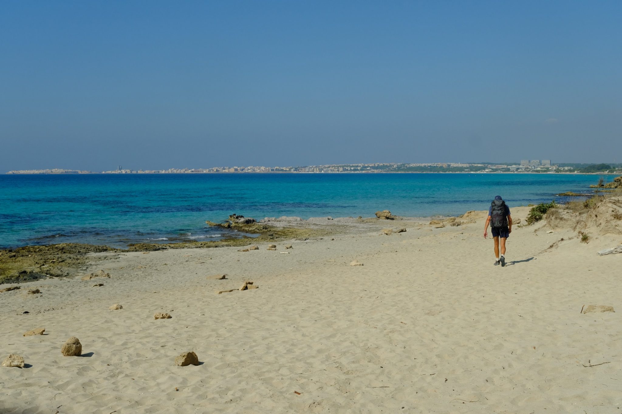 Encore une étape avec des paysages incroyables qui font rêver! Vous me manquez beaucoup aussi. Tellement content d’avoir retrouvé Nathalie mais une envie folle de vous rejoindre pour marcher dans le sable, admirer les paysages splendides, « mordre sur sa chique » pour continuer malgré la fatigue, certains muscles qui crampent, … Essayer de suivre le rythme effréné de Jean-Paul (comme la petite souris qui essayait de suivre l’éléphant dans la brousse et qui s’étonnait en regardant derrière elle : » on fait beaucoup de poussière à nous deux »), laisser Bernard admirer et capturer l’horizon, échanger avec Isabelle et écouter Gene. Quoi de mieux! Maintenant j’en suis sûr…le paradis est dans le talon de la botte de l’Italie! -:)