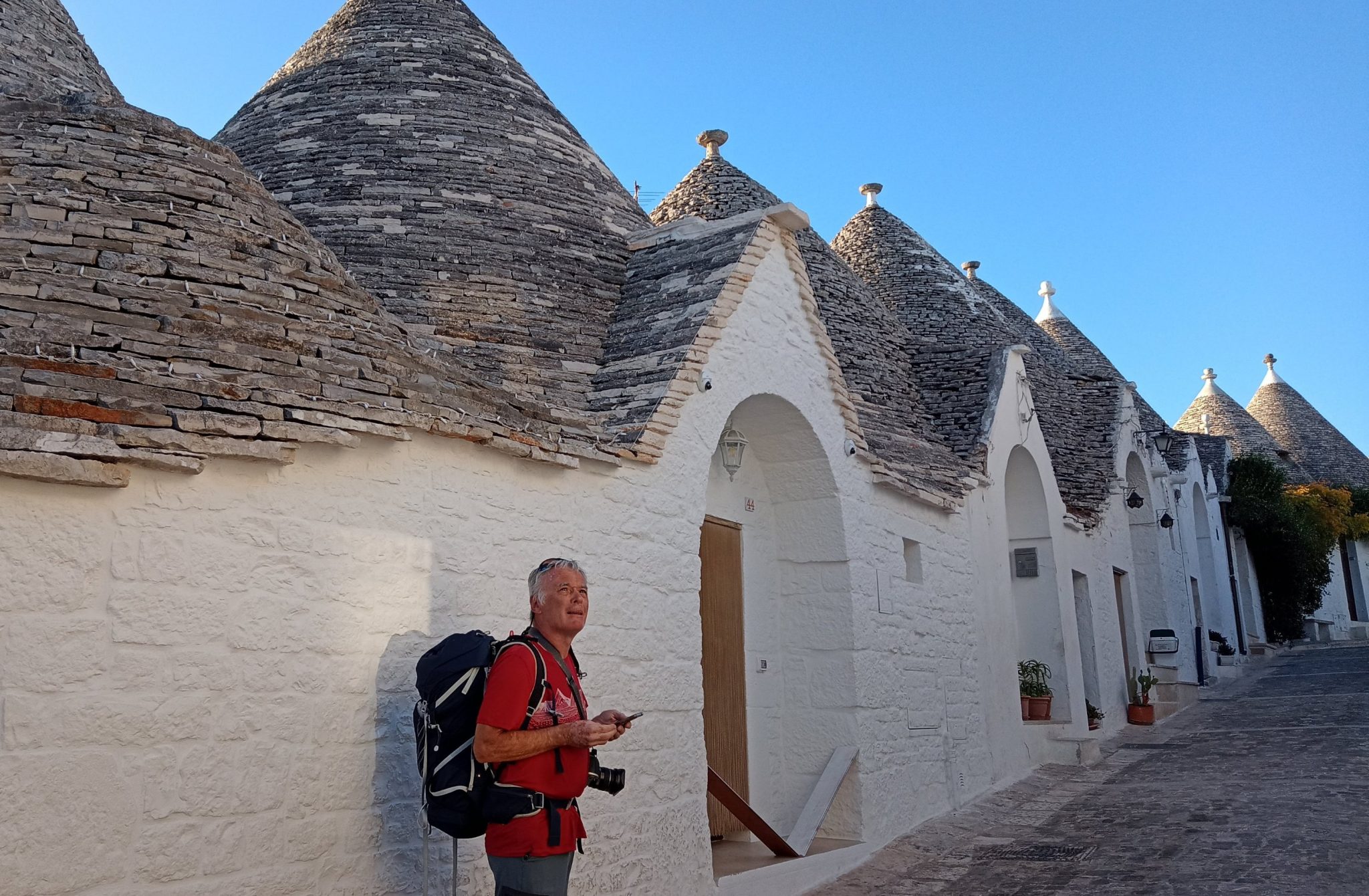 Départ matinal, petit déjeuner le long du corso de la ville, dernier coup d’œil du haut du belvédère sur l’ensemble des trulli sous l’éclairage du soleil de l’est. C’est quand même très beau. Encore mieux quand il n’y a pas un seul touriste dans ses rues, puisque notre chemin passe par ce bel ensemble. Donc, à retenir: il faut visiter Alberobello le matin très tôt ou le soir.