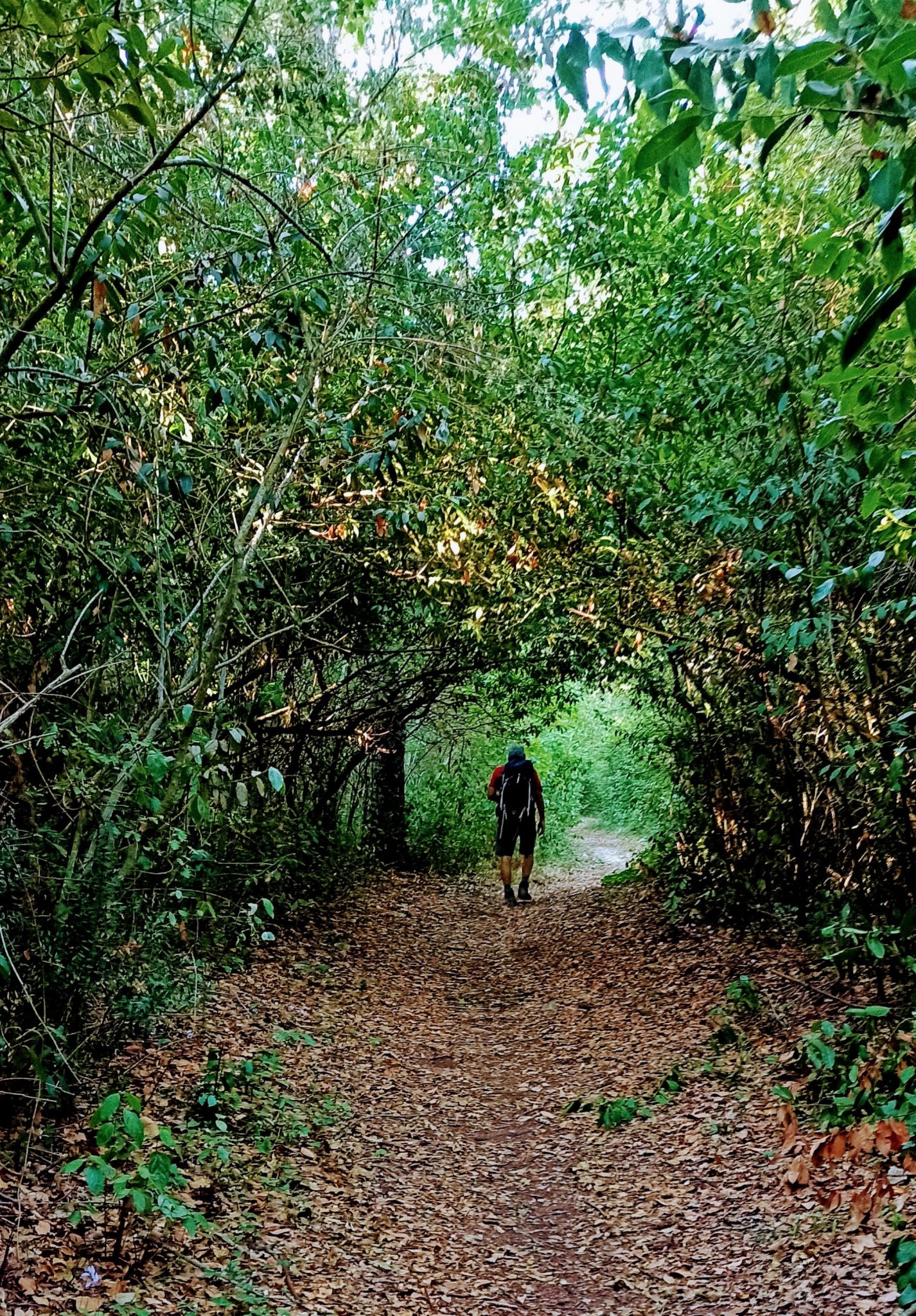 Au menu ce matin: traversée de bois de chênes et de noisetiers, chemin ombragé et très agréable. Ensuite petits sentiers agricoles traditionnels où le calme règne, pas un chat, parfois un chien qui aboie. Belle lumière d’automne.