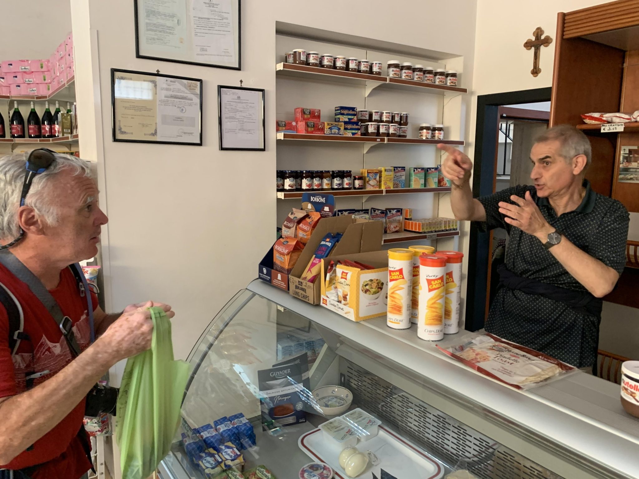 Par chance au détour d’un hameau, nous pouvons acheter nos pains garnis chez un brave monsieur, plus préoccupé par sa maman qui veut encore s’occuper du magasin…soit, nous dînerons aussi avec le raisin et les kakis que gentiment ce monsieur nous a offert…!