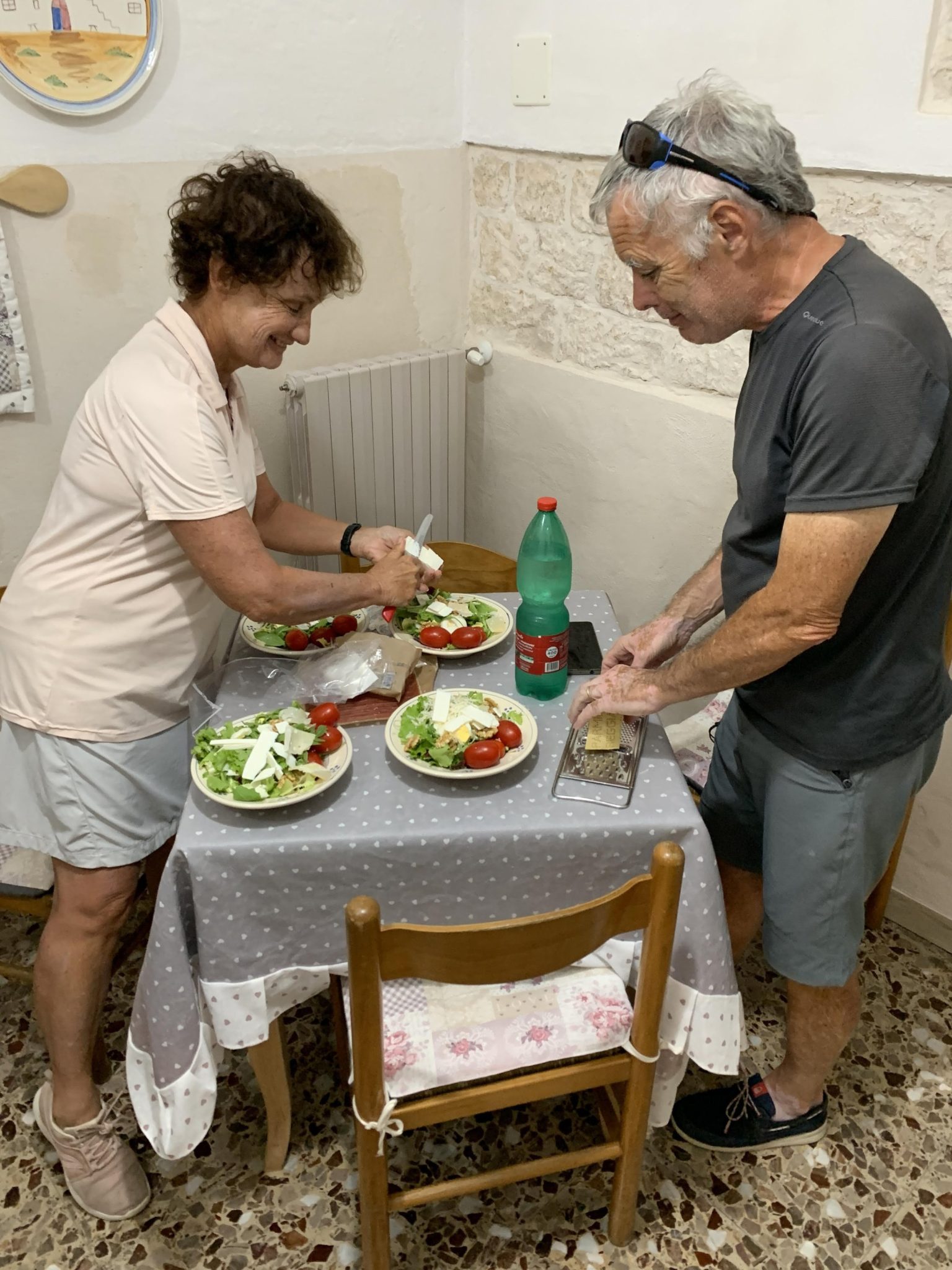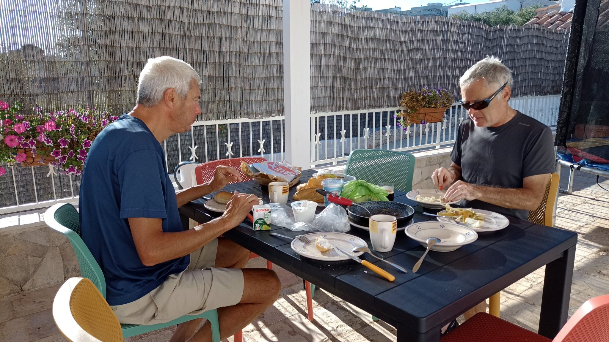 Sur le temps de midi, les hommes croisent Françoise par hasard en ville. Bonheur des retrouvailles autour d’une salade « chez nous ». Notre hôte nous offre même des figues de son jardin.