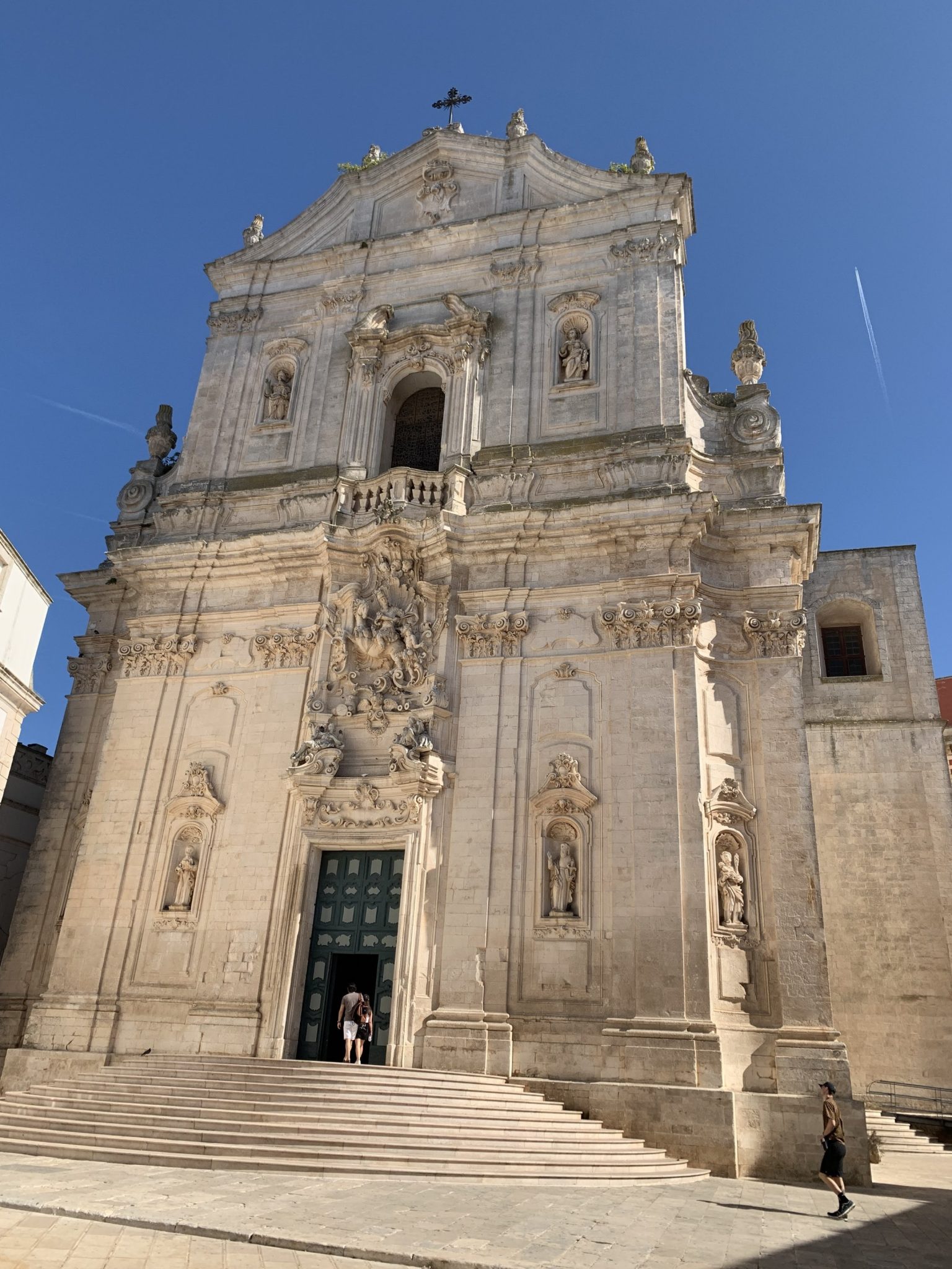 Après une petite sieste ou la dolce vita au soleil (ah, qu’il est doux de se poser!), nous repartons à la découverte de Martina Franca. La nouvelle ville est principalement composée de HLM, mais le centre historique est très joli avec énormément de belles façades, de beaux encadrements de portes et dallé de marbre.