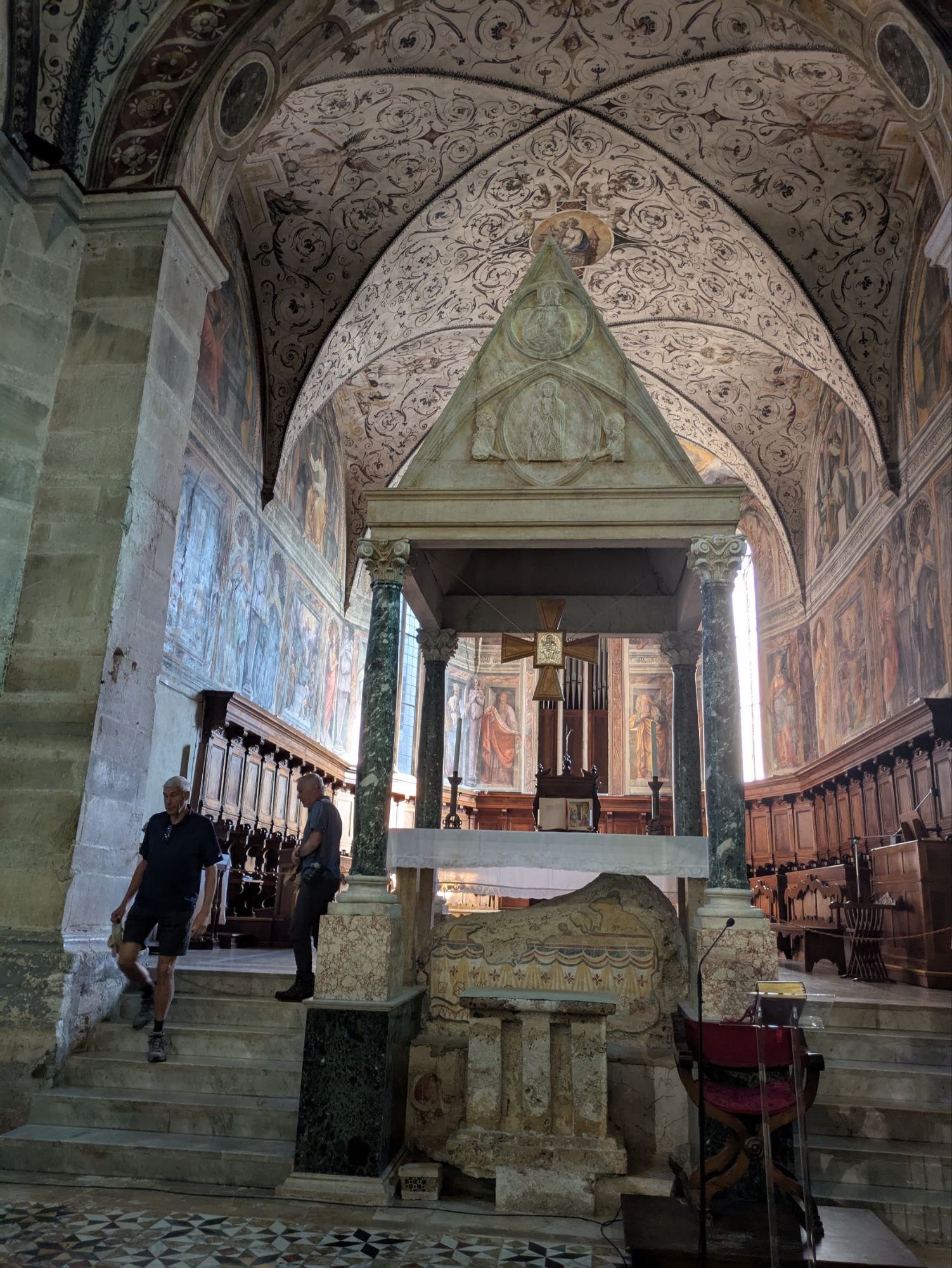 Ce matin, une visite guidée était organisée dans le monastère et l’église en rénovation. Malgré l’italien endormant du guide, nous avons été charmés par les richesses et la grandeur du lieu dans cet endroit calme et paisible.