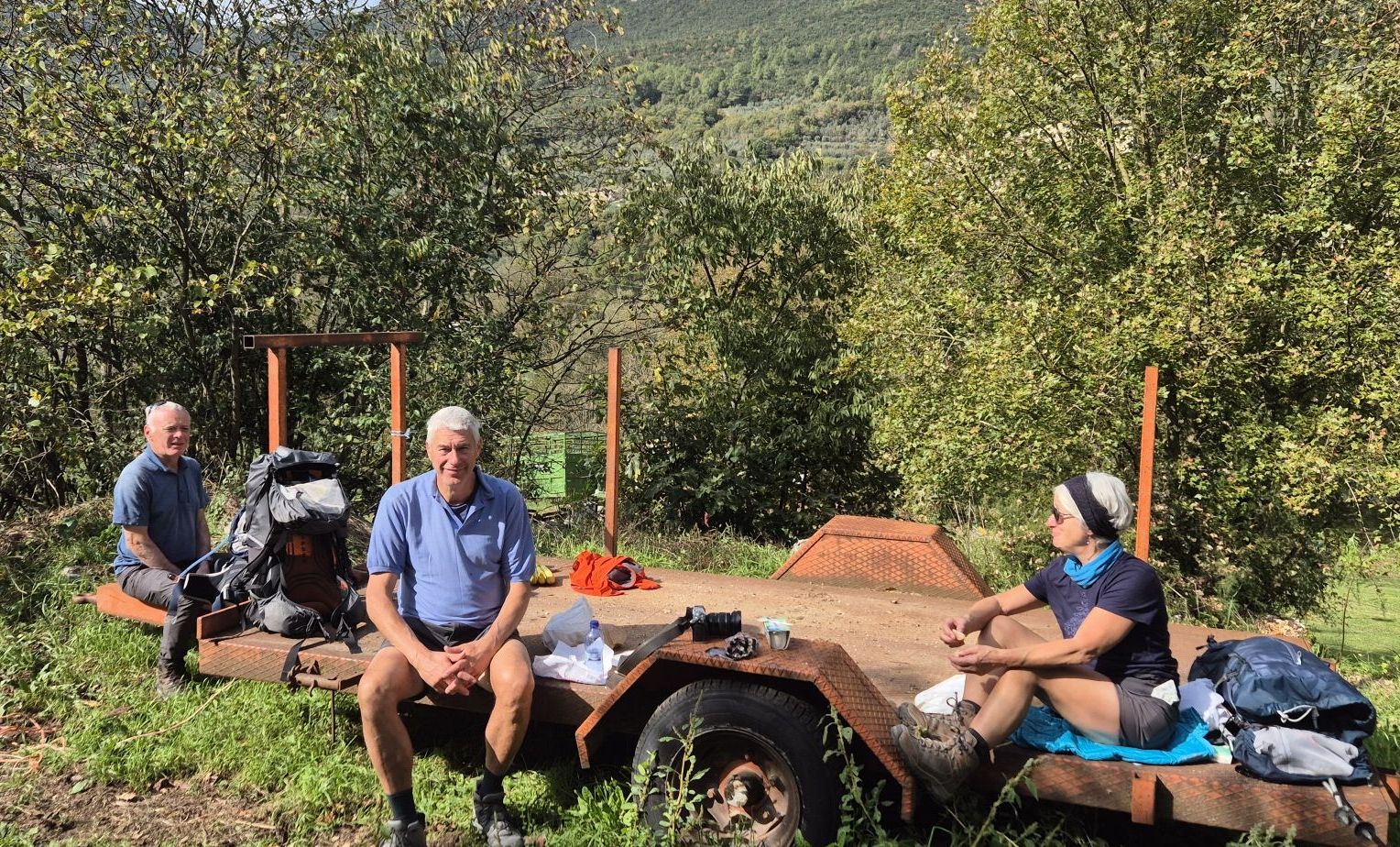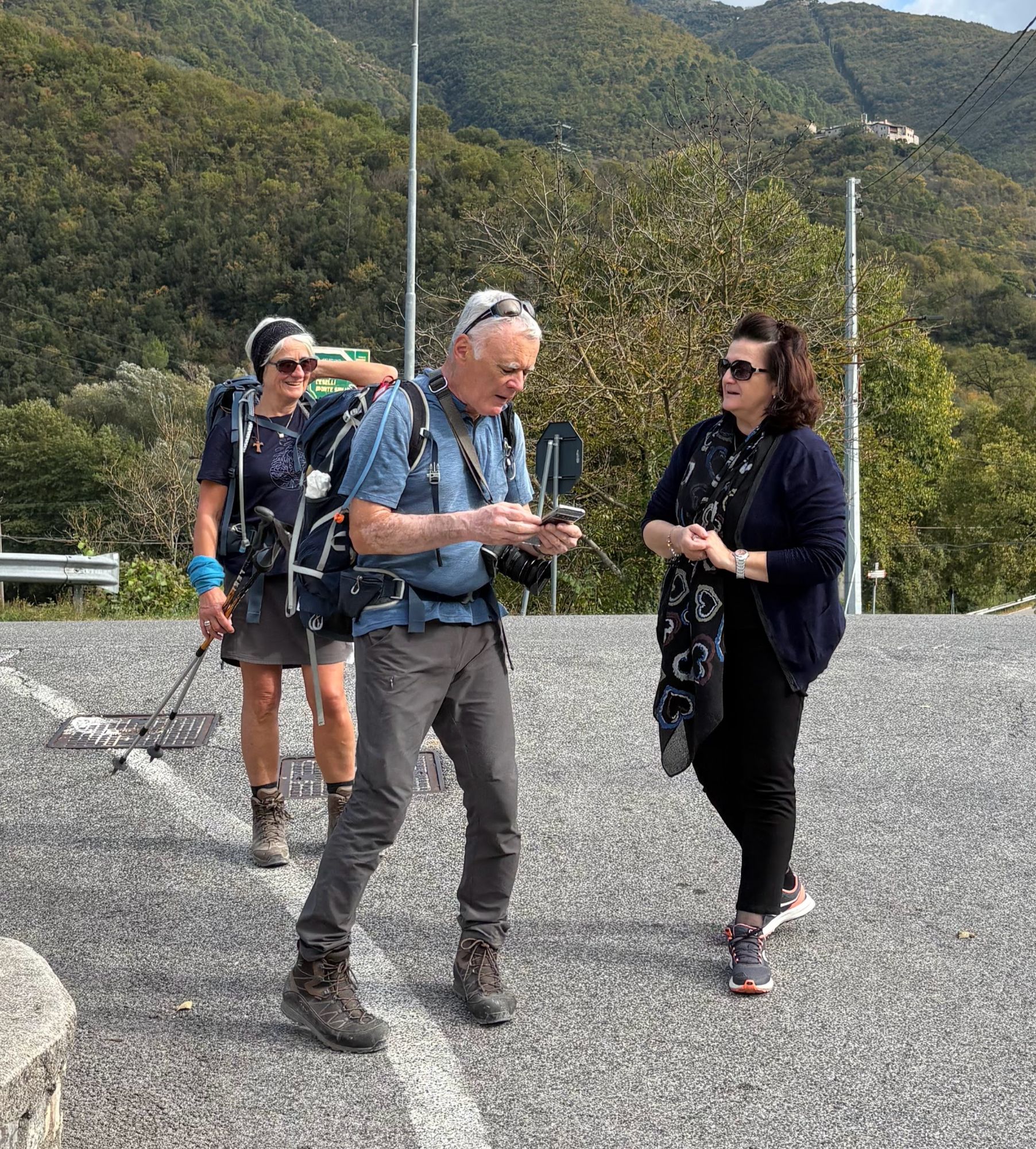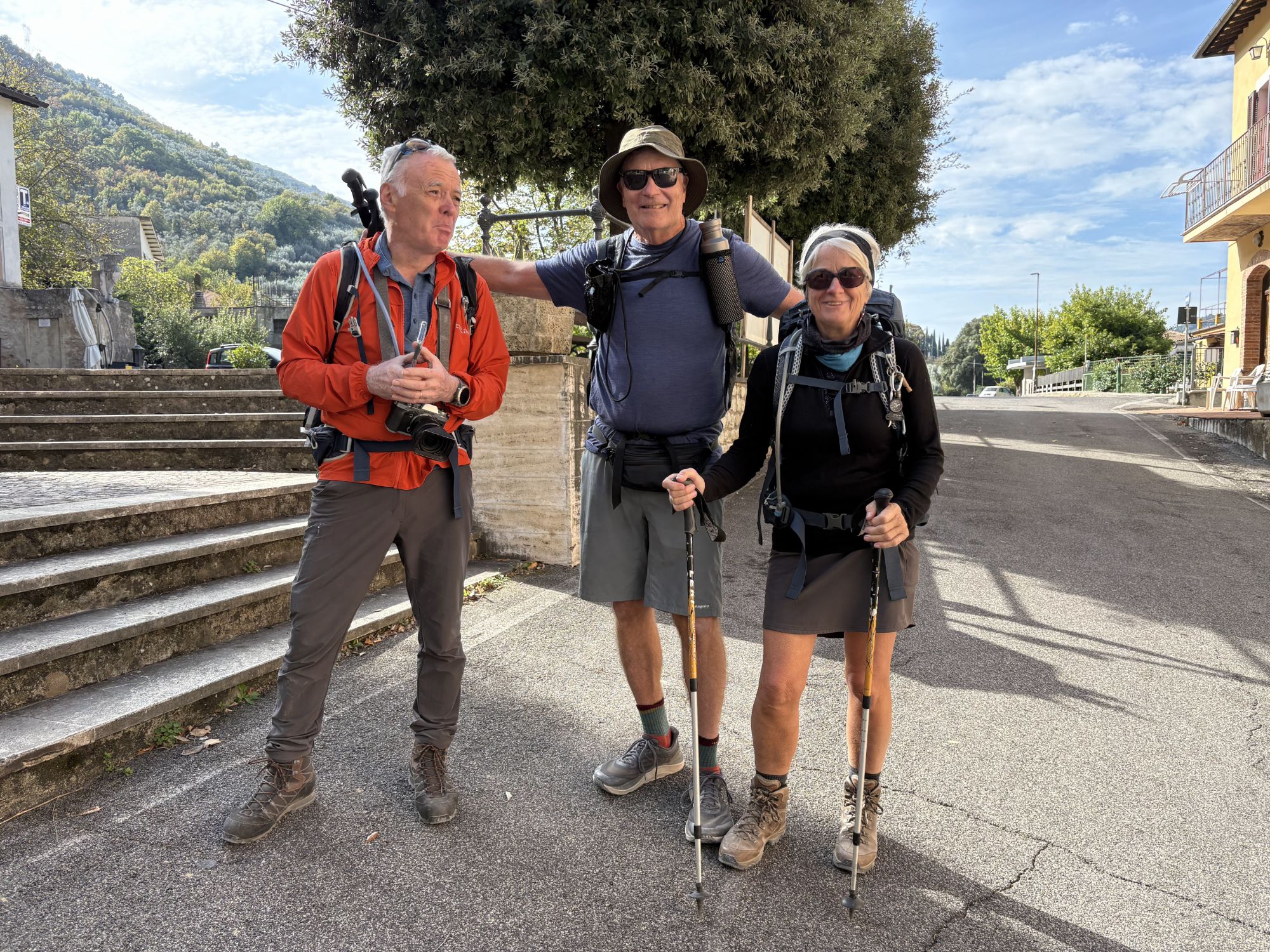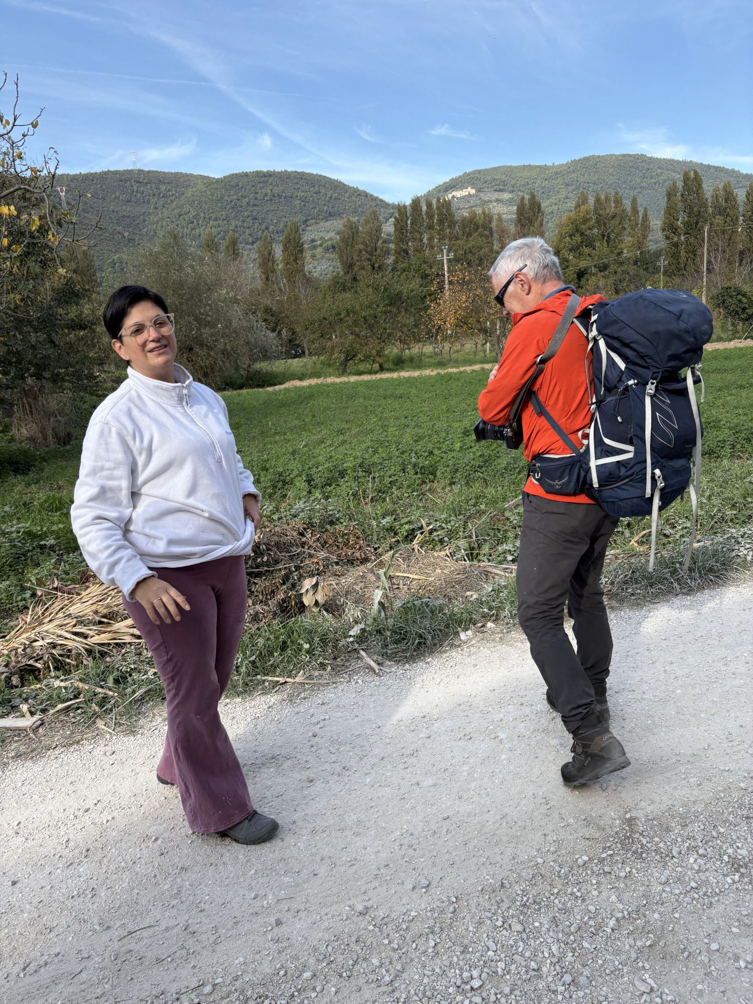 Arrivée au village (sans bar ni restaurant ni magasin ! ) de Ceselli, point final de la journée , enfin pas tout à fait, car notre gîte se trouve à 3 km … de montée bien rude. Le B&B est dans un petit hameau (borgo) habité par 2 personnes. A l’arrivée, Jean-Paul explore la petite église San Nicola du Bari. Elle est toute simple et jolie. Elle est inspirante pour la prière (voyez ces 2 paroissiennes…).