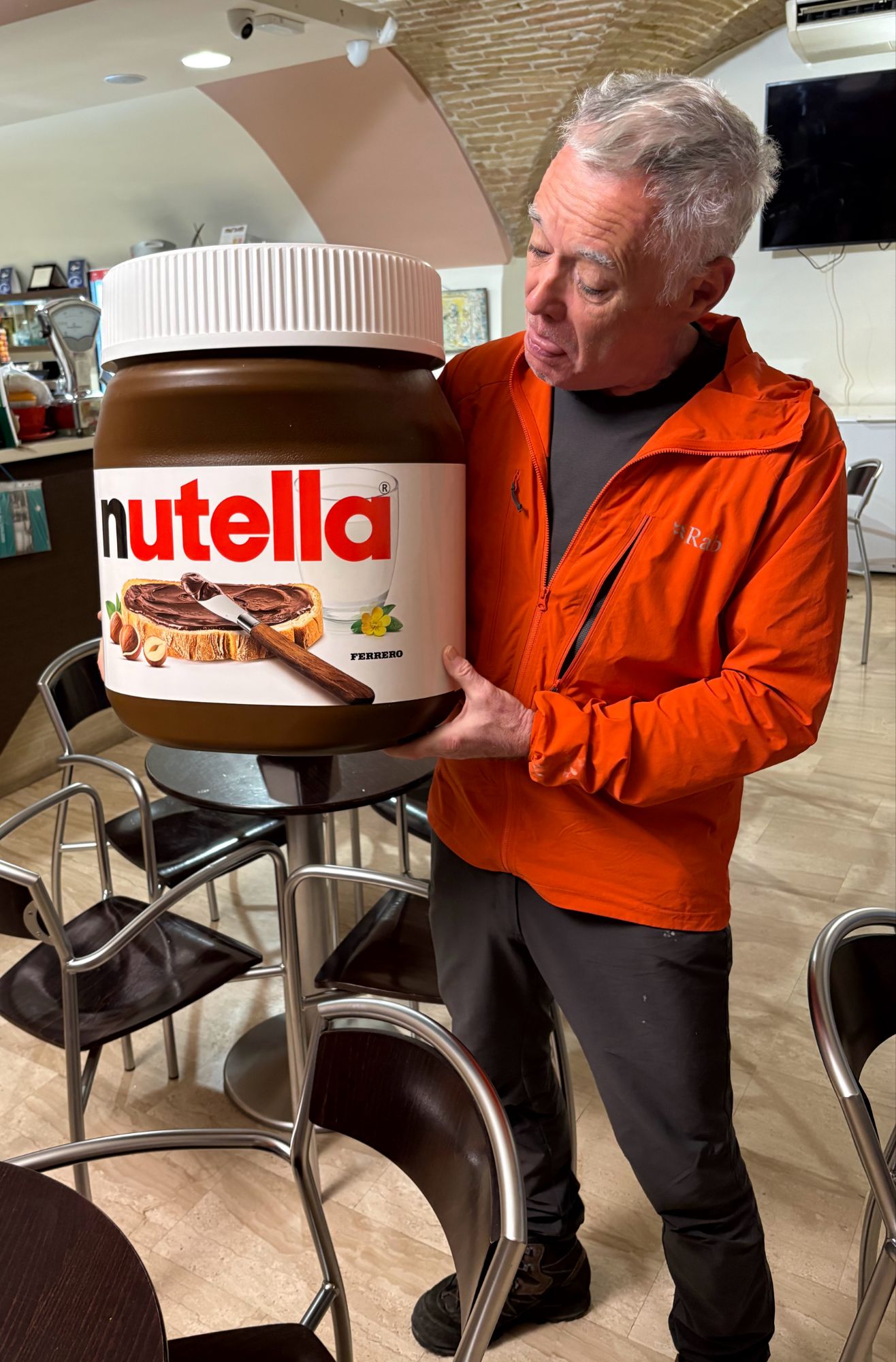 Déjeuner au café de Rome sur la grand’place de Trevi. Bernard résiste à ne pas emporter le pot géant de Nutella. Nous quittons Trevi, ville où le céleri est une spécialité, sous une température et un vent rappelant la mer du Nord…
