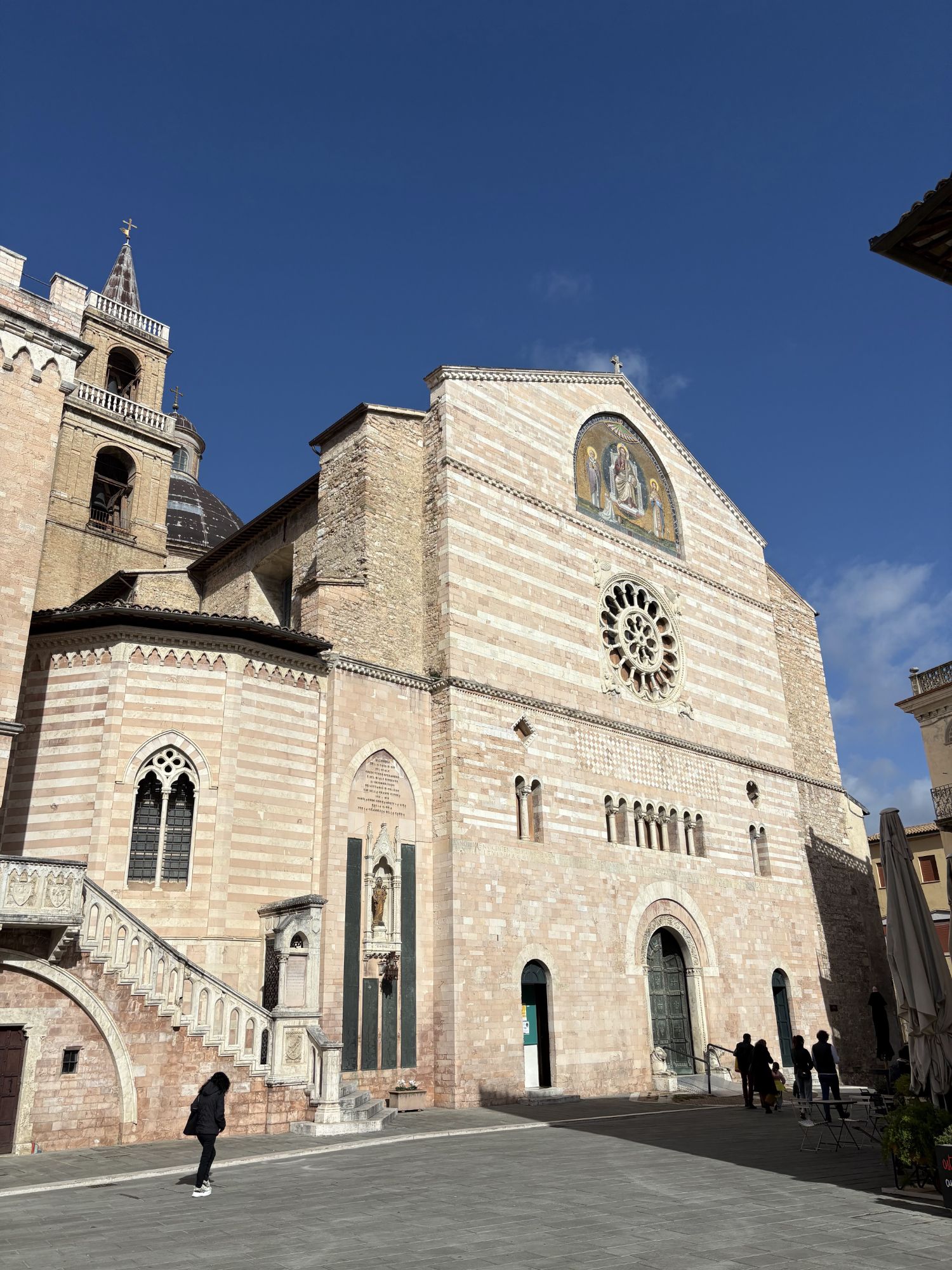 Midi sonne et nous arrivons à Foligno. Centre historique assez séduisant où cathédrale et palazzo se côtoient harmonieusement. Panini mangés sur le pouce. On continue notre route vers Spello, jolie petite ville accrochée à sa colline (pour ne pas changer). Collégiale, nombreuses églises et mignonnes ruelles nous sont offertes à la visite.