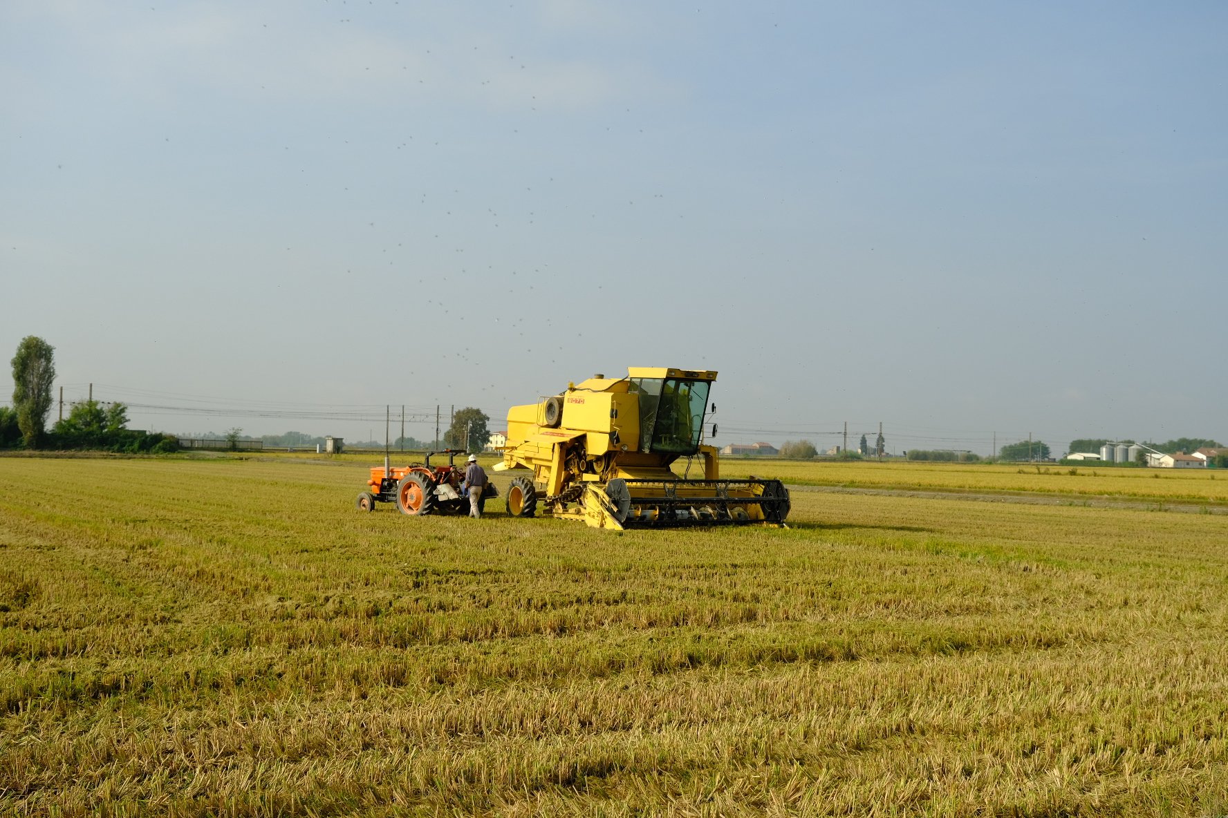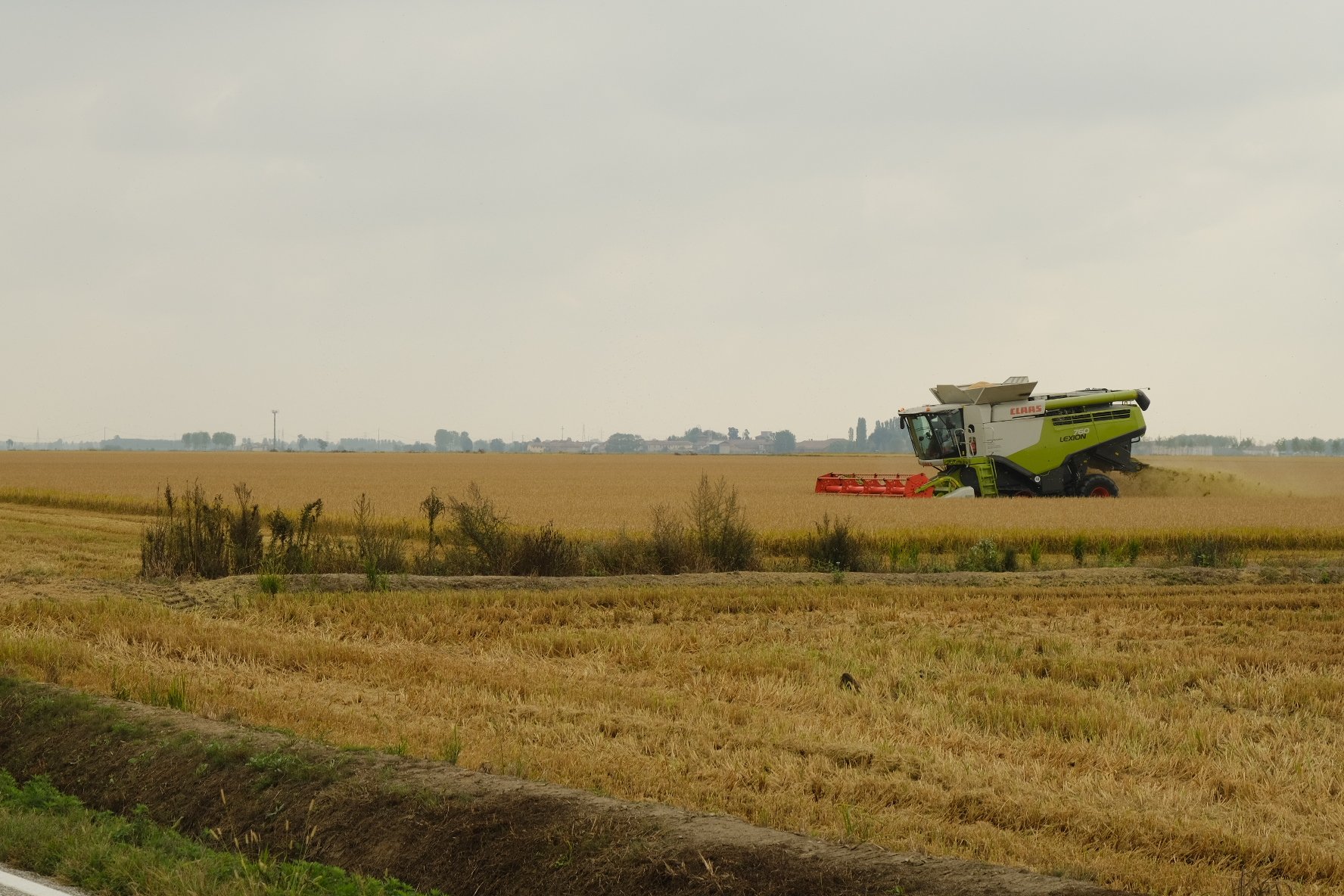 C’est la période de la récolte du riz. Grosse artillerie d’engins agricoles. Voici quelques photos pour Papy ;-).  On nous a expliqué que ce sont des multinationales qui exploitent une bonne partie des terres.