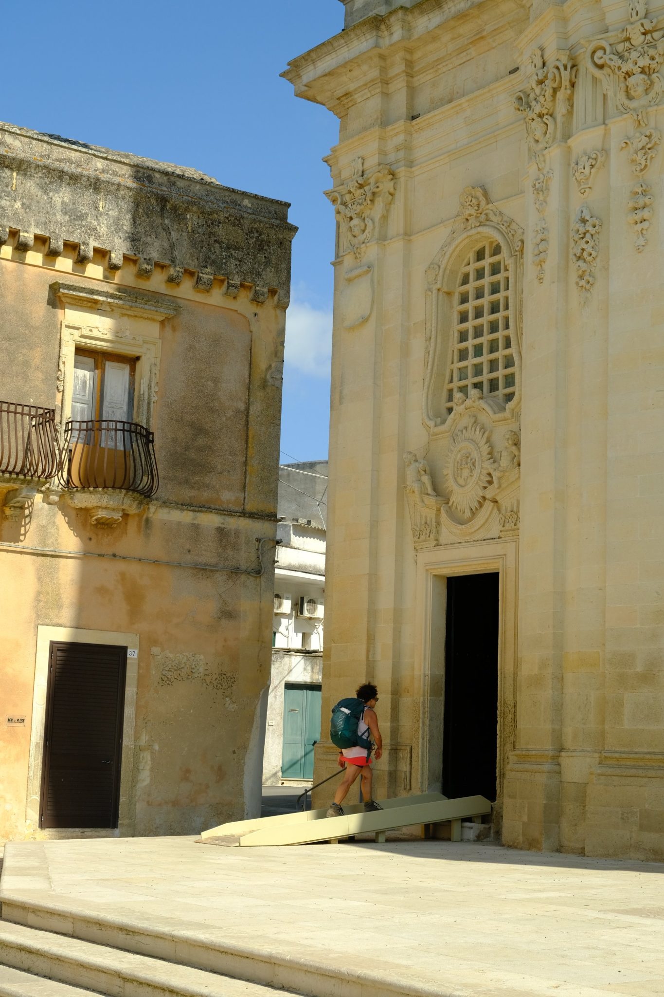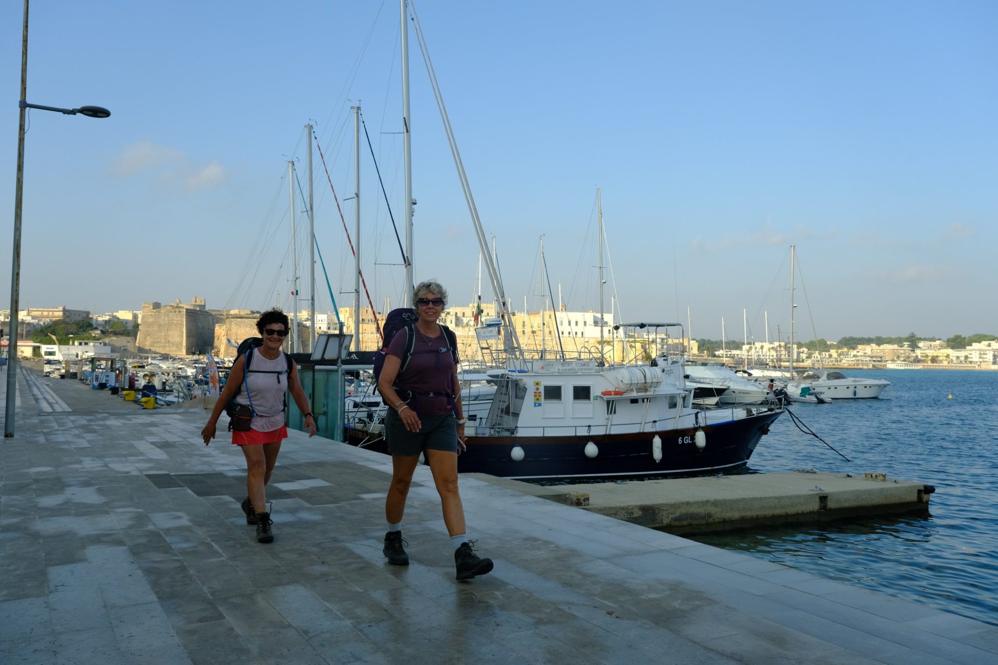 Levés de bonne heure quand la météo s’annonce bonne et chaude, avec un bon petit déjeuner-maison, nous quittons Otranto, point le plus à l’est de l’Italie. Nous accompagnons cette belle lumière du matin en retraversant le centre historique de la ville.