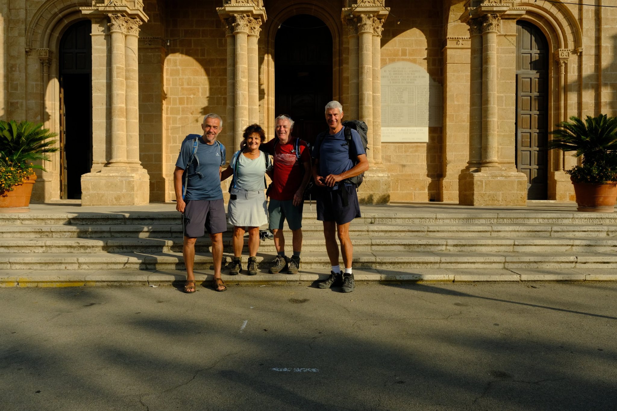 Arrivés à Lido Di Marini, ces mirages deviennent réalités magnifiés par une baignade dans le golf de Tarente. Nous nous retrouvons pour la première fois sur une belle plage de sable fin en pente douce: l’eau arrive aux genoux de Jean-Paul, aux parties intimes de Bernard, et au nombril d’Isabelle.