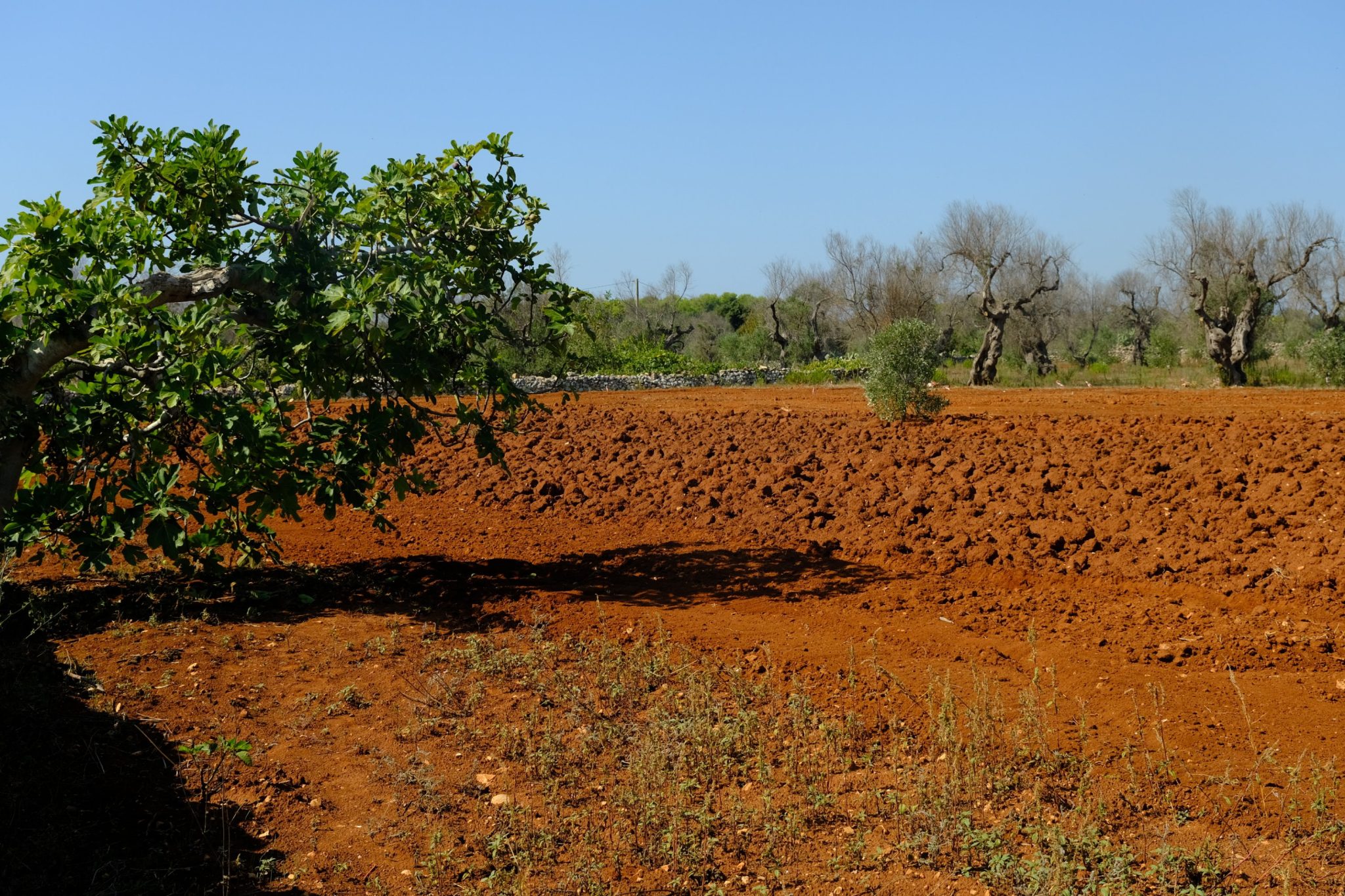 L’interieur du talon ne diffère guère de l’extérieur. Nous y retrouvons la même nature:  figues et grenades à chaparder,  figuiers de barbarie que nous n’avons pas encore osé manger par peur des picots, cactus, troncs d’oliviers, une terre très rouge-brun, beaucoup de belles senteurs, et toujours une multitude de petits murets.