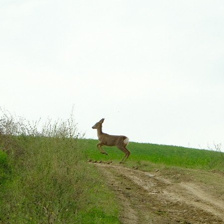 L’étape du jour nous offre à nouveau de beaux paysages. Nous croisons une petite biche sautillant devant nous.
