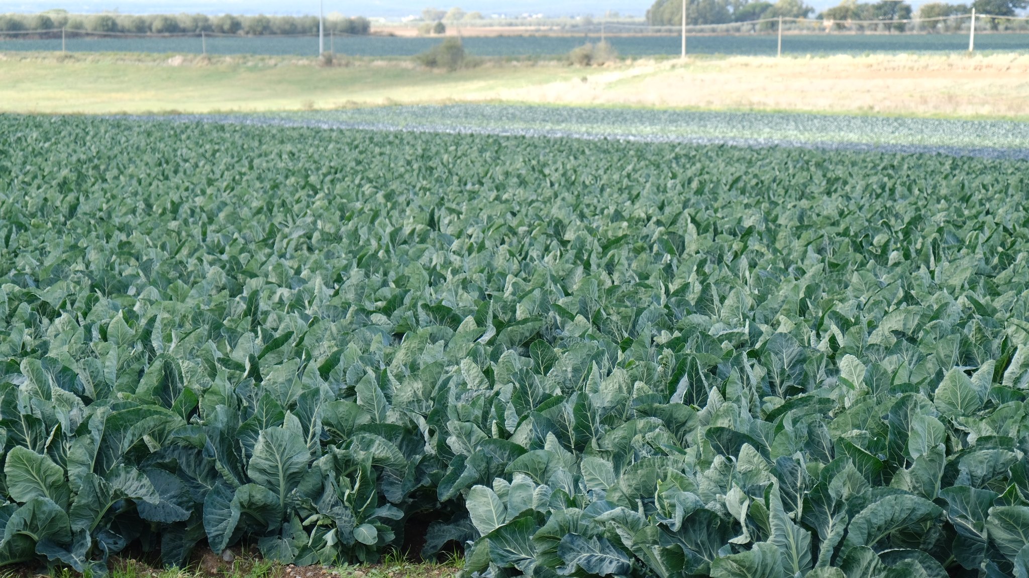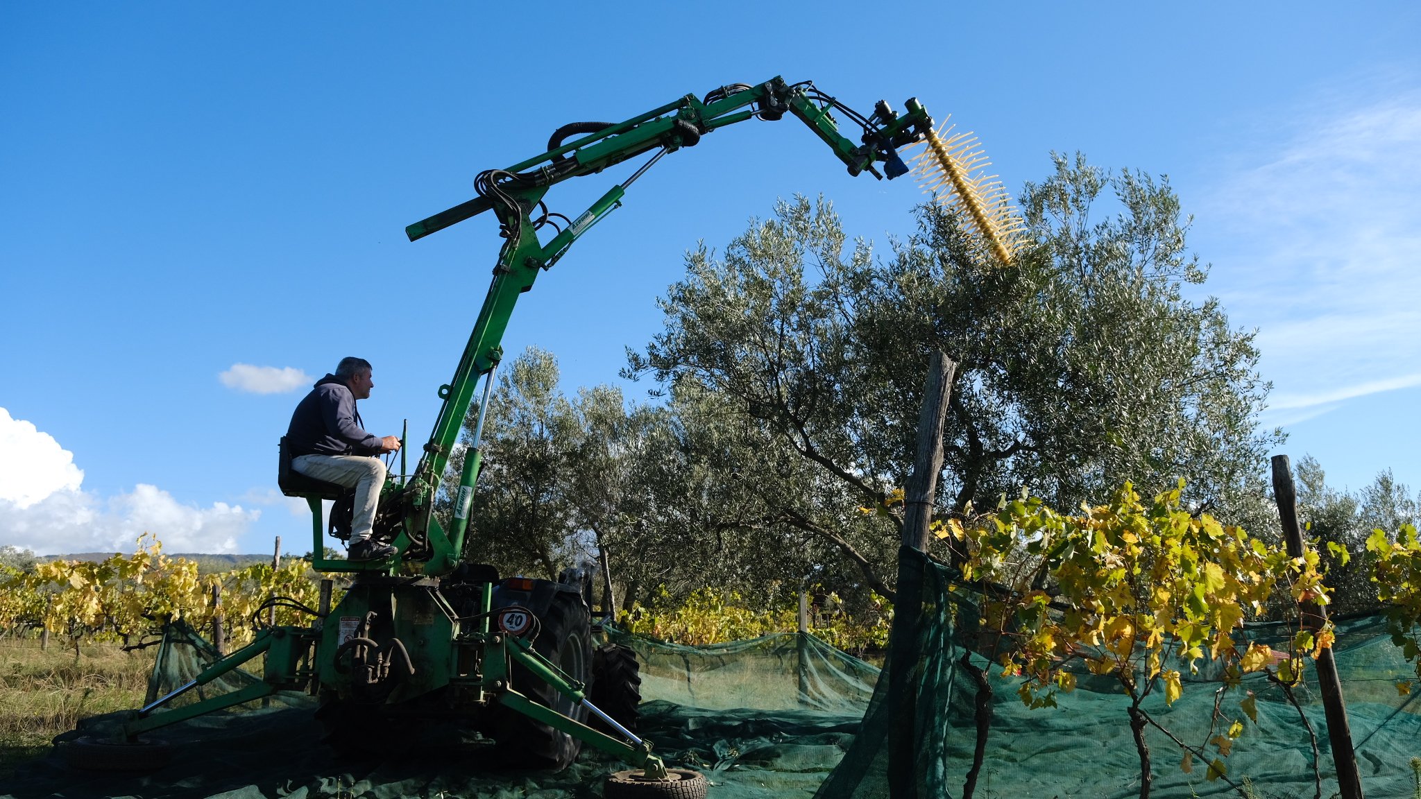 Donc hier c’était grand soleil après le temps pluvieux de la veille. Dès que nous franchissons l’enceinte de la ville, nous nous retrouvons sur une route qui semble taillée dans la pierre. La campagne est d’abord couverte d’immenses champs de choux, puis ce sont les champs d’oliviers en phase de récolte.