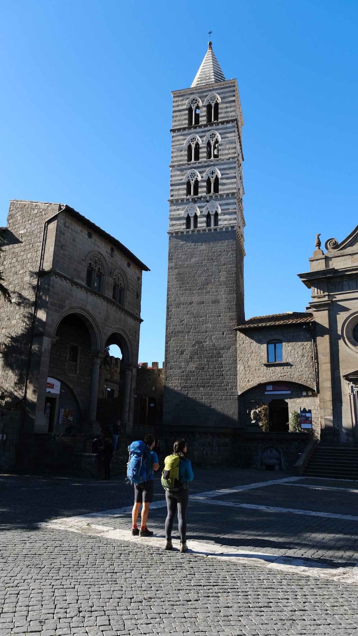 Hier, avant d’entamer l’étape vers Vetralla, nous visitons la petite ville de Viterbo. Elle fut un lieu de résidence préféré des papes, d’où quelques très beaux bâtiments, entre autres le palais des papes. En allant chercher le petit déjeuner, je croise par hasard Martin, le prêtre allemand avec qui j’ai marché il y a qq jours en Toscane.