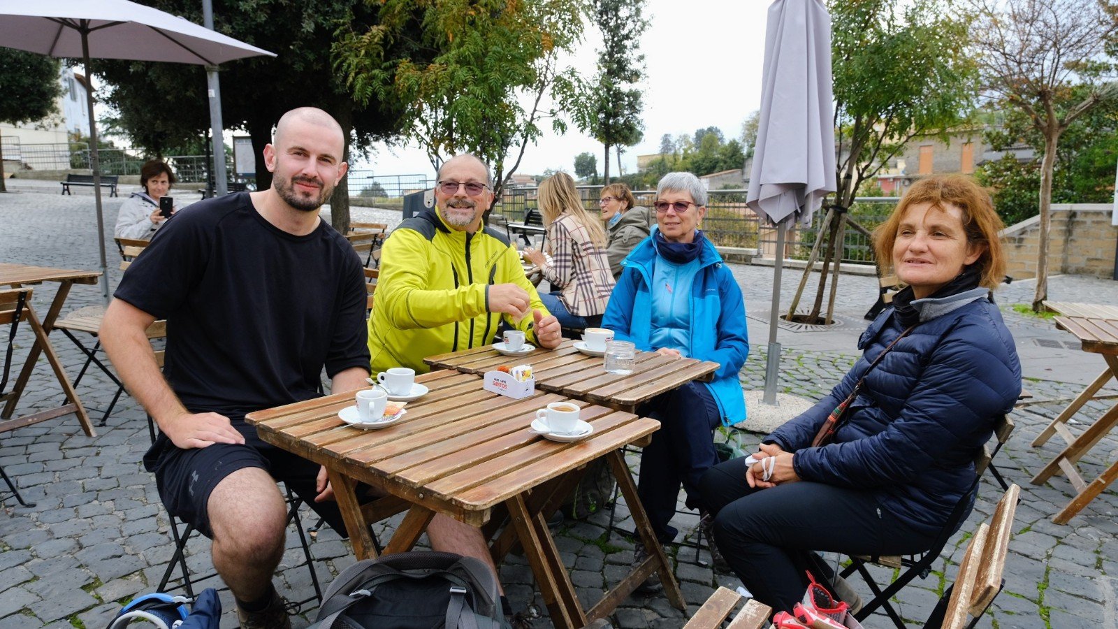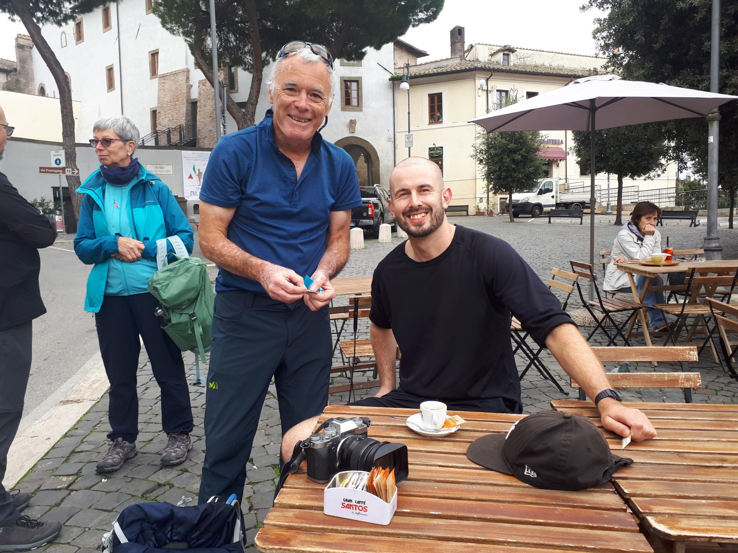 Hier midi, nous retrouvons Michèle et Massimo qui marcheront avec nous jusqu’à Rome. Grâce à leur voiture, nous pouvons nous délester d’une partie de notre sac à dos – cela fait du bien !