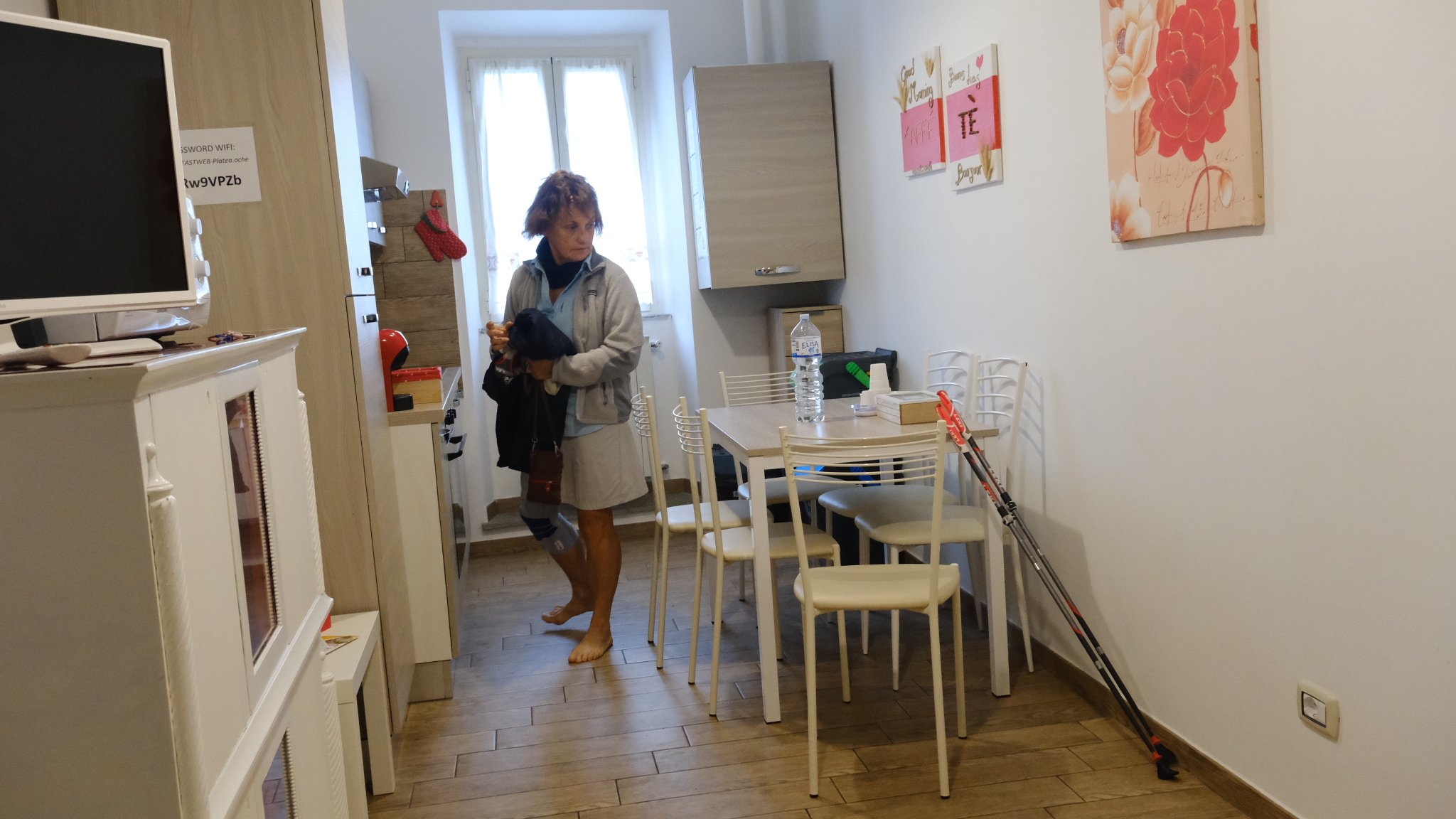 Hier soir, nous nous sommes posés à Campagnano du Roma après une solide marche de 24km. Les genoux d’Isabelle ont été bien mis à contribution…. Nous n’avons trouvé aucun restaurant, excepté une oenoteque avec du vin délicieux, mais inversement proportionnel aux pãtes proposées…. Massimo a bien dormi, le ventre léger.